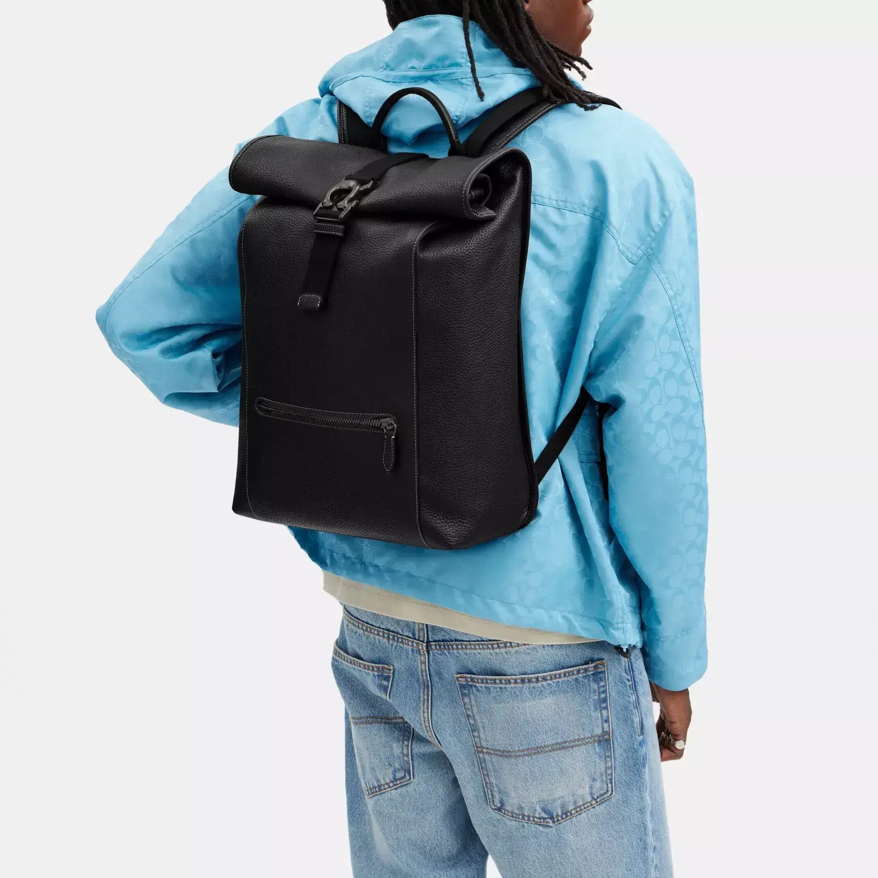 Always on call, our Beck is a sophisticated sporty choice for everyday. Crafted of soft polished pebble leather, this sleek roll top backpack has space for a 16″ laptop, interior multifunction pockets and an outside zip pocket for easy organization. Featuring exterior zipper access to the main compartment, the work-to-weekend style is finished with a lightweight and breathable Signature spacer mesh back, adjustable shoulder straps and a chest strap for comfortable wear. (C and be seen with our sporty Signature speedclip hardware.)