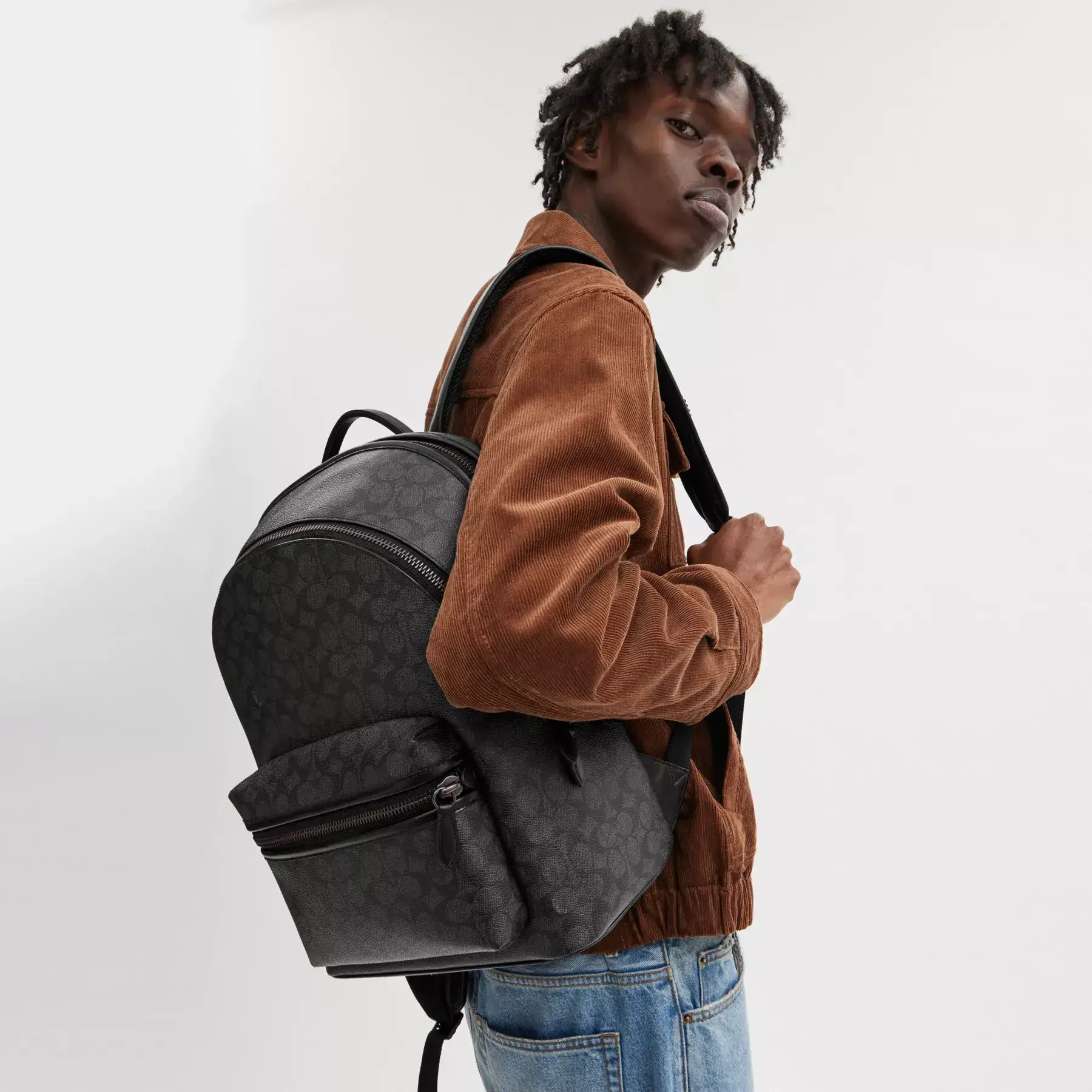 For adventures near and far, our Charter is designed to make every journey, commute and errand feel like a first-class experience. The Charter Backpack is an old-school silhouette crafted of refined leather and our Signature canvas. The structured interior has a padded tech sleeve with space for a 16” laptop and multifunction pockets for keeping your phone, chargers and other essentials organized.