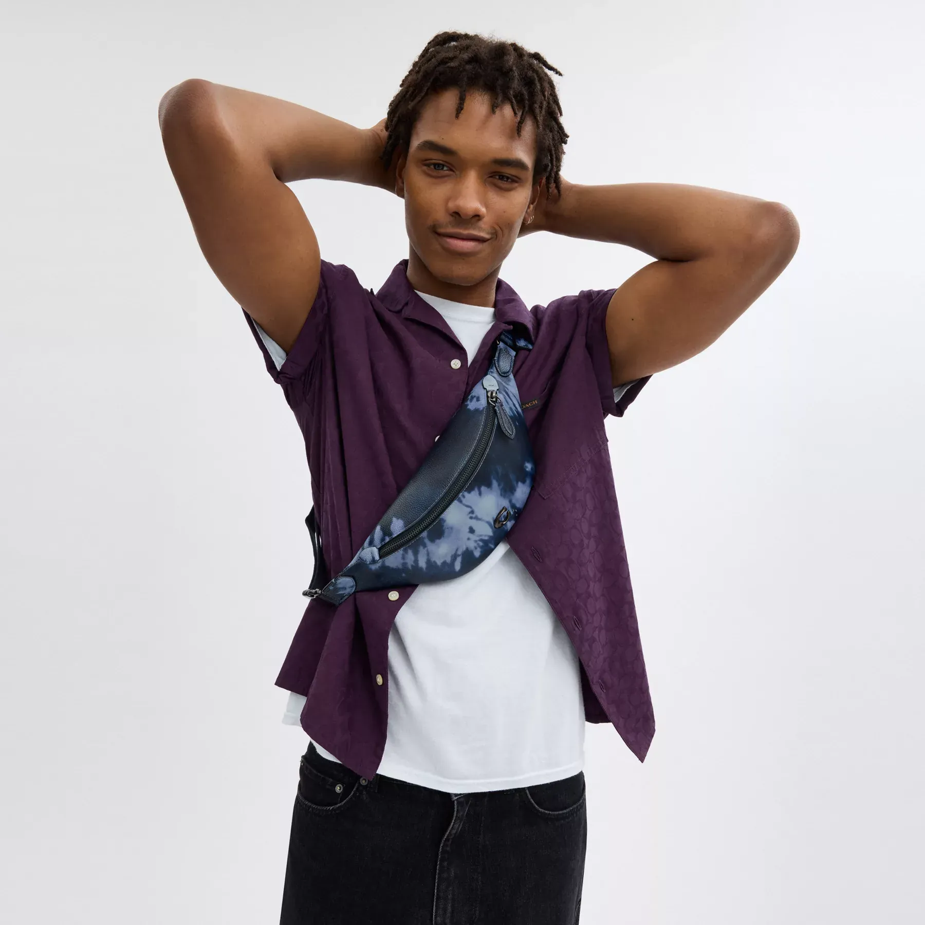 ,For adventures near and far, our Charter is designed to make every journey, commute and errand feel like a first-class experience. Crafted of pebble leather printed with our sophisticated spin on a classic tie-dye pattern and finished with our Signature hardware, this hands-free polished pebble leather 7 has space for everyday essentials and adjusts in length to be worn crossbody or over the shoulder.