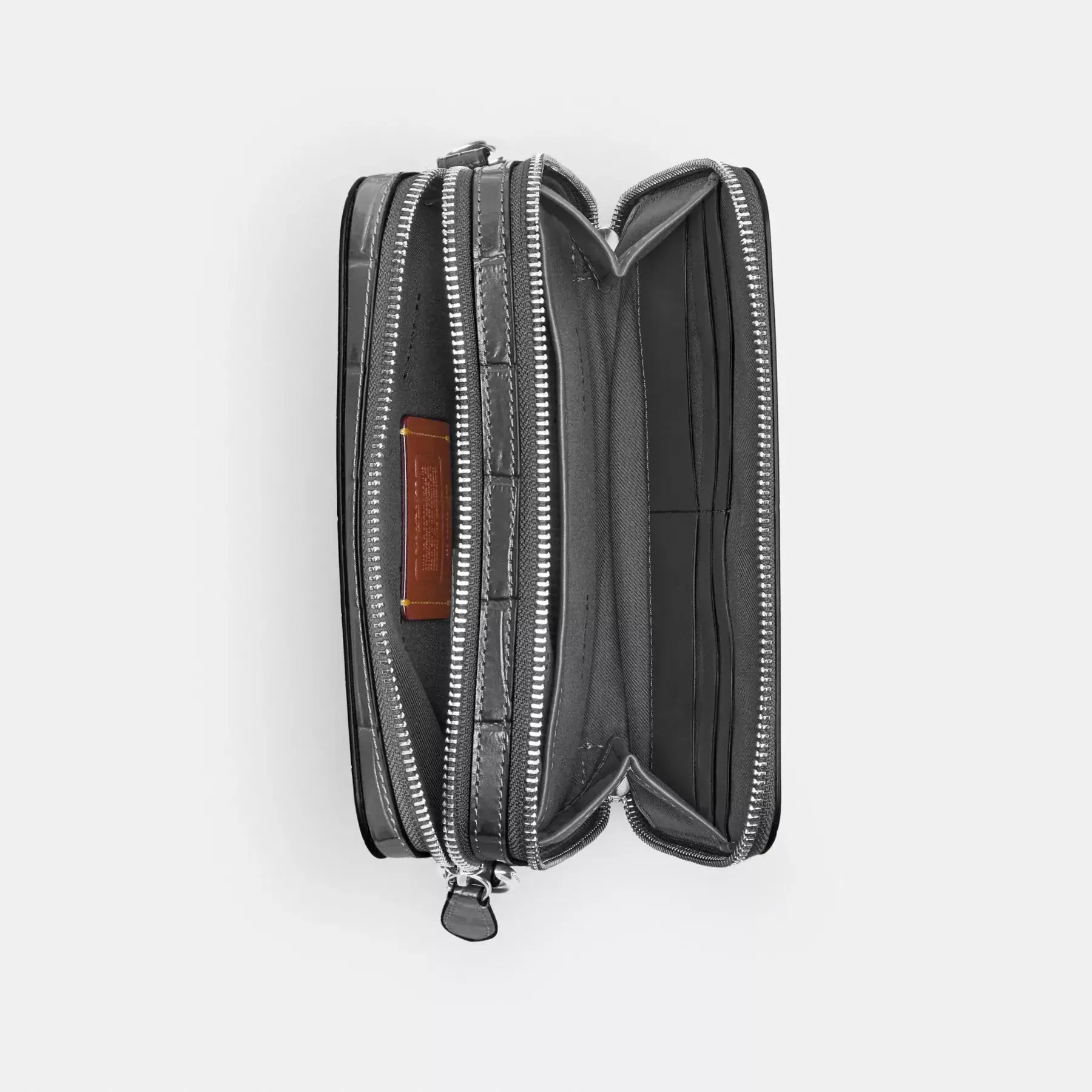 ,For adventures near and far, our Charter is designed to make every journey, commute and errand feel like a first-class experience. Crafted of distinctive crocodile-embossed leather detailed with our tonal Signature hardware, our dual-zipper Crossbody 19 holds everyday essentials with interior card slots, a multifunction pocket and room for a phone, wallet and more.