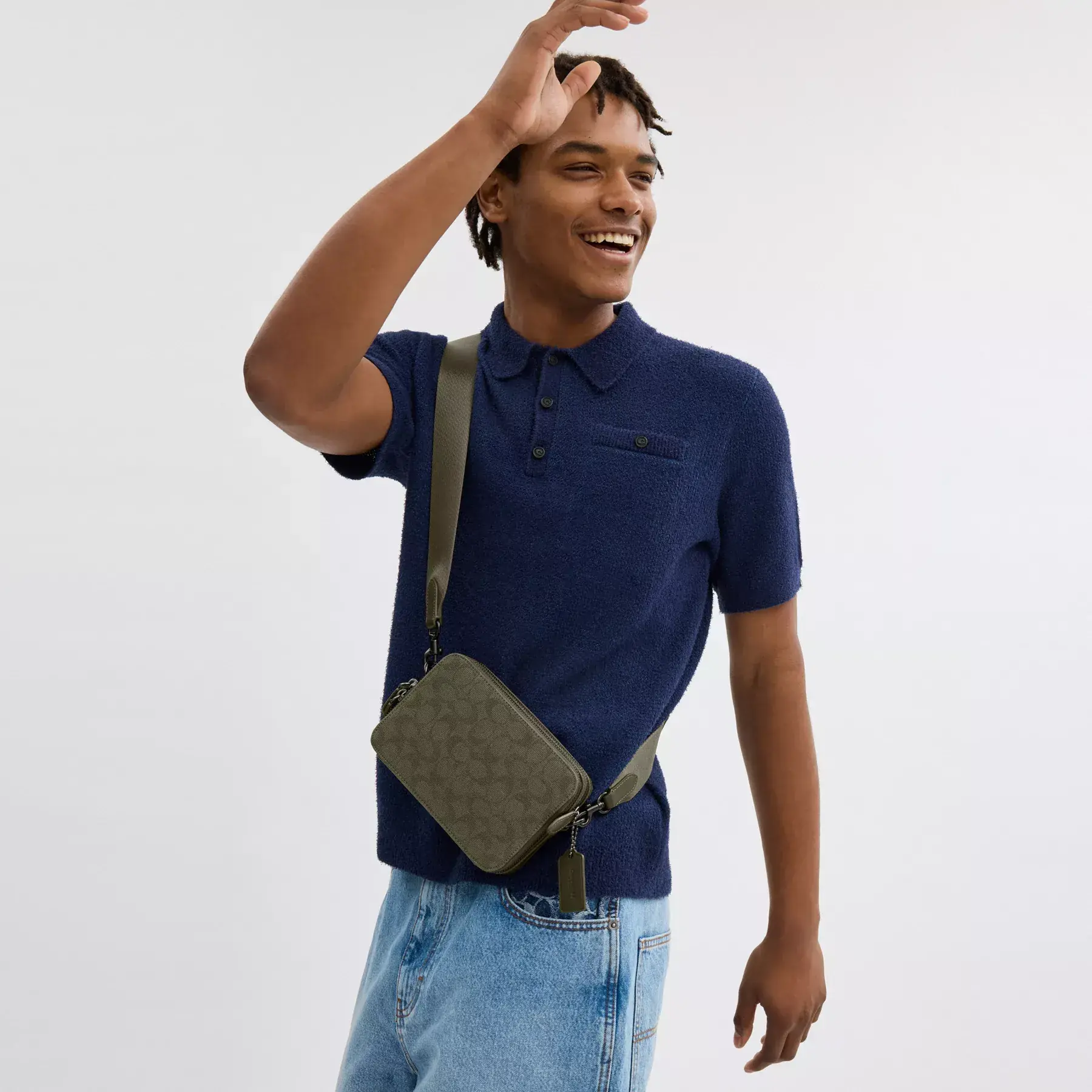 ,For adventures near and far, our Charter is designed to make every journey, commute and errand feel like a first-class experience. Crafted of refined leather and our durable Signature canvas jacquard created from certified organic cotton made without the use of harmful chemical fertilizers or pesticides, our dual-zipper Crossbody 19 holds everyday essentials with interior card slots, a multifunction pocket and room for a phone, wallet and more.