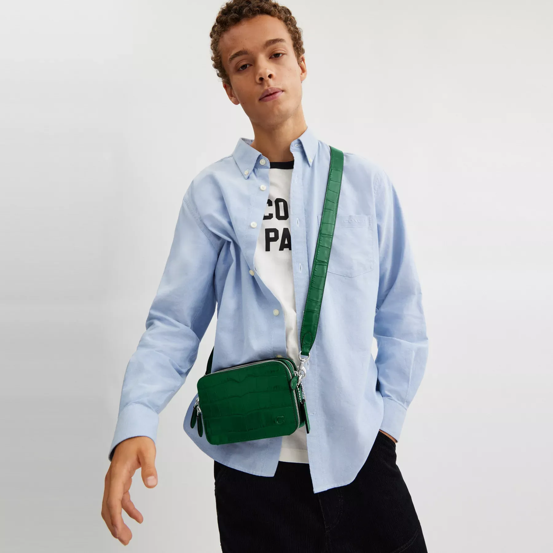 ,For adventures near and far, our Charter is designed to make every journey, commute and errand feel like a first-class experience. Crafted of distinctive crocodile-embossed leather detailed with our tonal Signature hardware, our dual-zipper Crossbody 19 holds everyday essentials with interior card slots, a multifunction pocket and room for a phone, wallet and more.