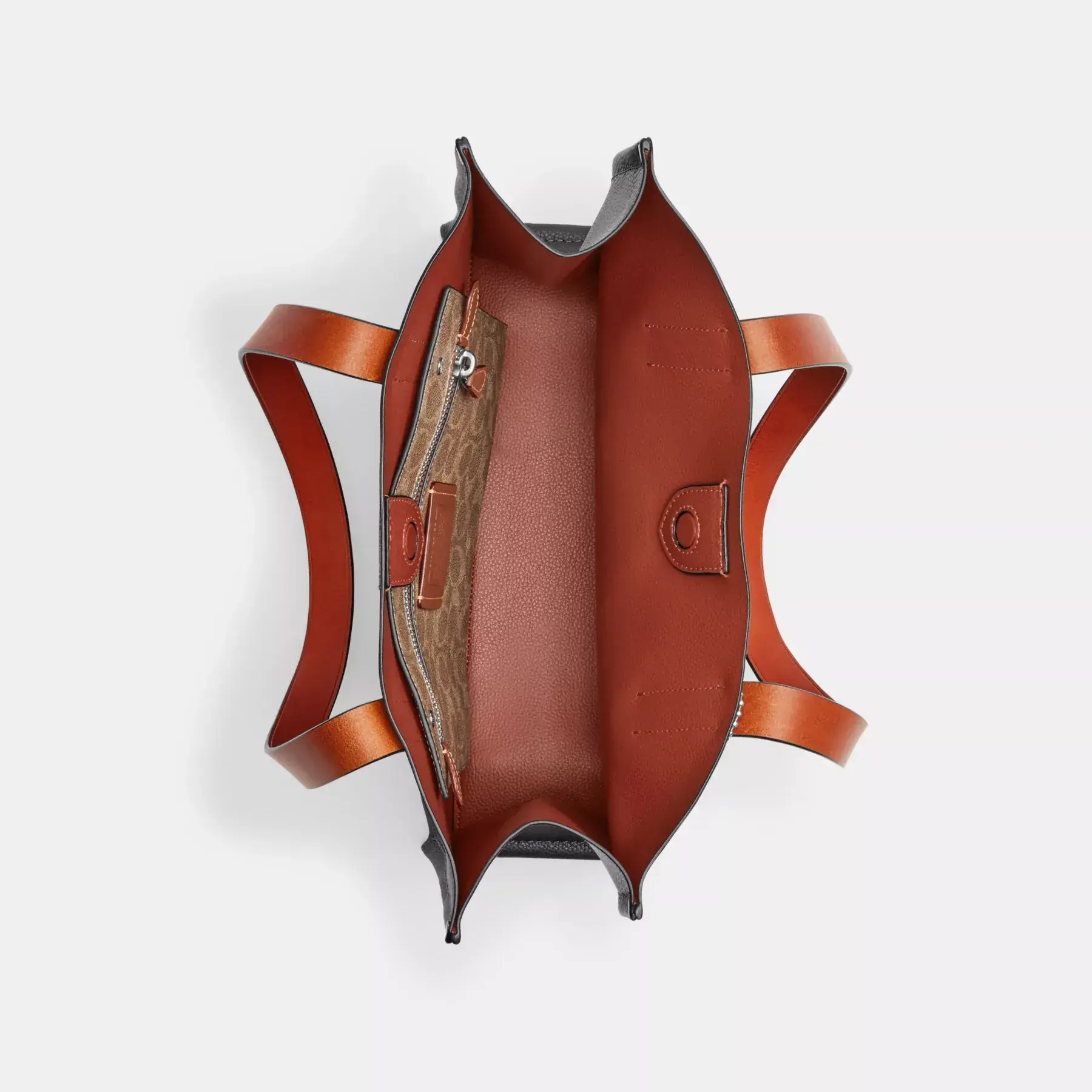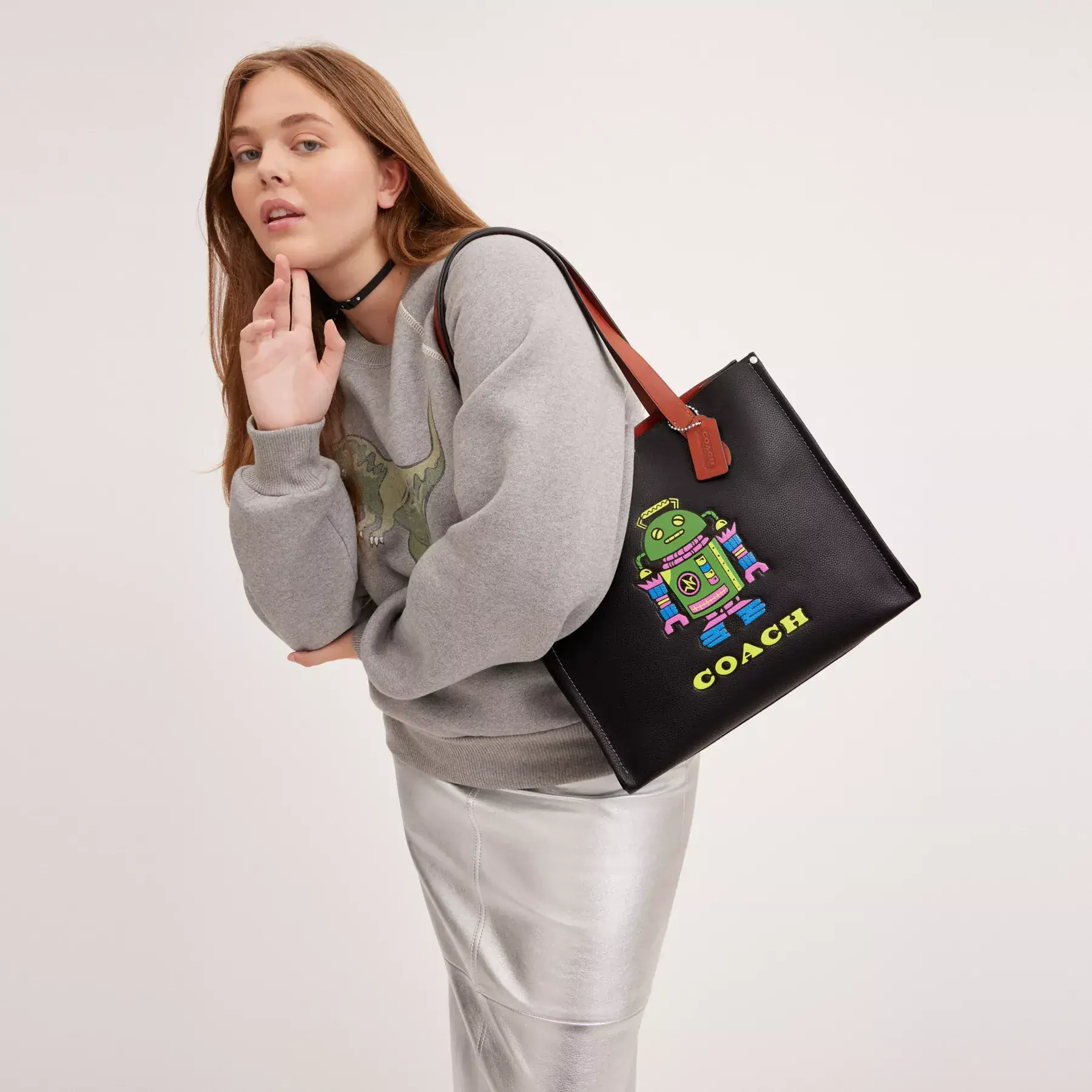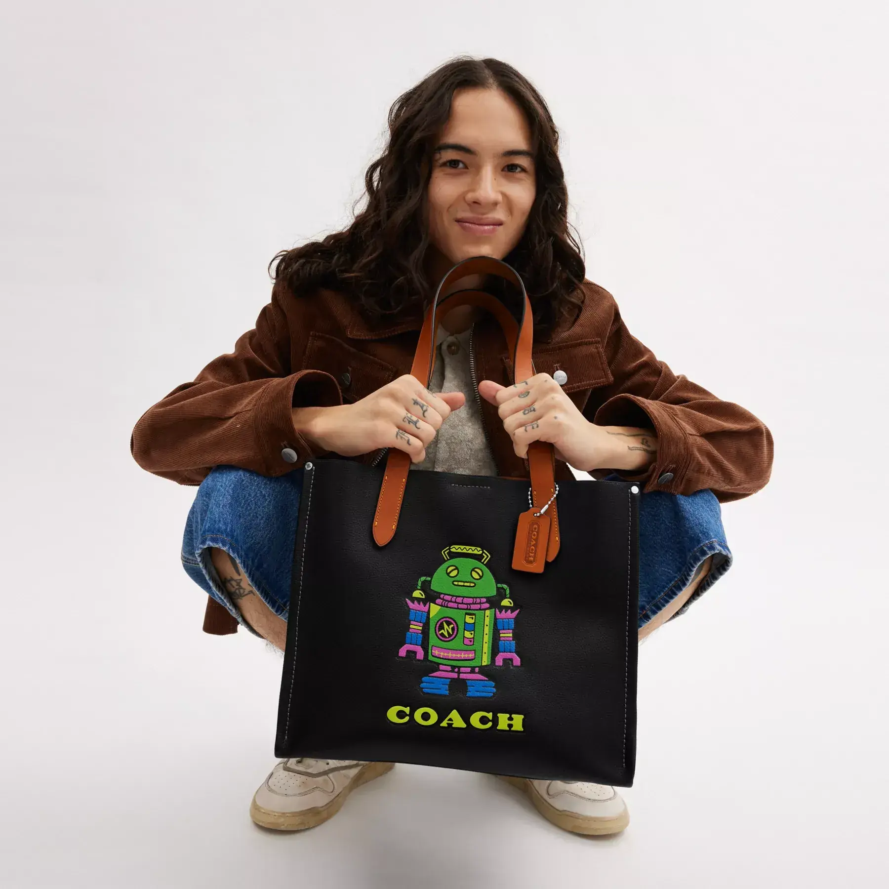 Have a blast with our out-of-this-world Cosmic Coach collection (luckily, you won’t have to travel to a galaxy far, far away to find it!). Whether your day is a sprint or a marathon, our Relay Tote is ready to go the distance. Perfect for every day, the midsize carryall has room to hold work, workout or weekend gear with space for a 13″ laptop and an interior zip Signature canvas pocket to organize essentials. Crafted of pebble leather featuring a lovable droid motif, it secures with a magnetic snap closure. (Effortless style and major functionality? Yes, please!)