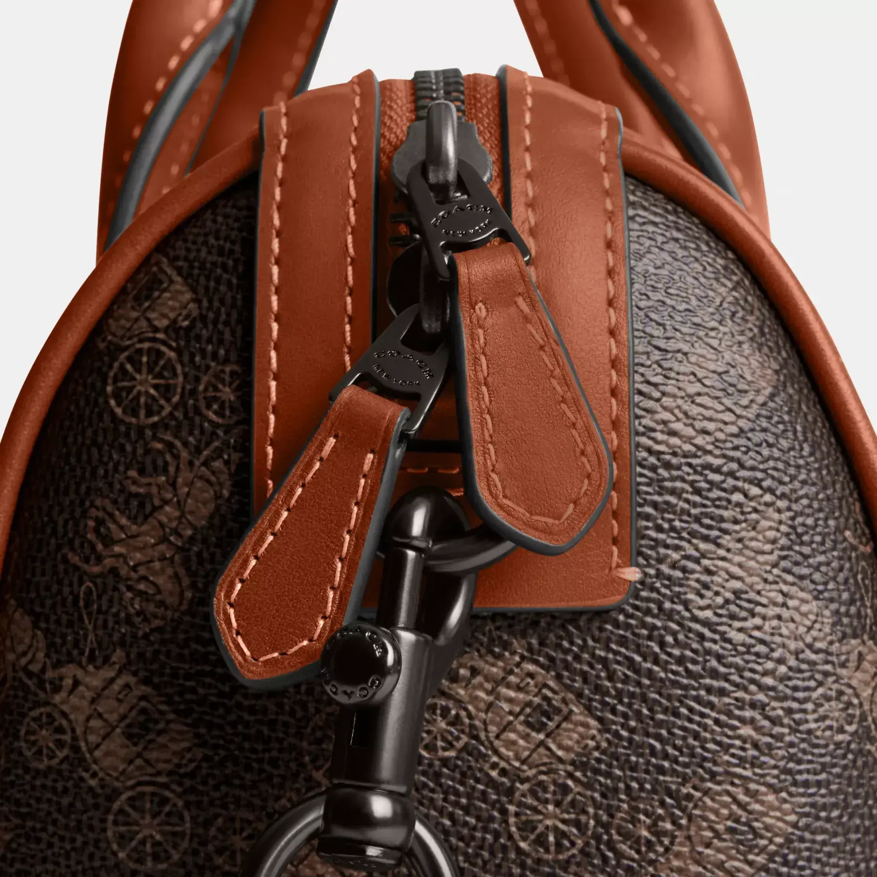 ,A bag as distinct as its namesake city, the Gotham is a sleek no-fuss carryall. With inside multifunction pockets for easy organization, this compact Duffle 24 features an open interior with room for everyday essentials. Crafted of refined leather and durable coated canvas printed with our iconic Horse and Carriage motif, it’s secured by a zip closure and finished with a detachable strap for shoulder or crossbody wear.
