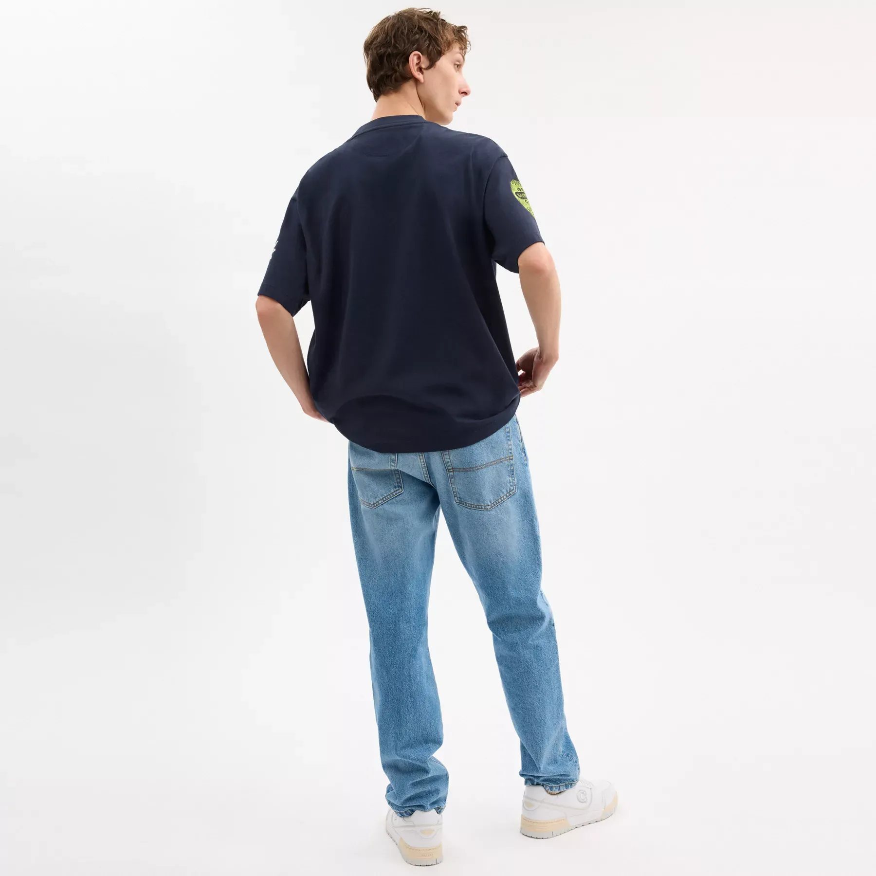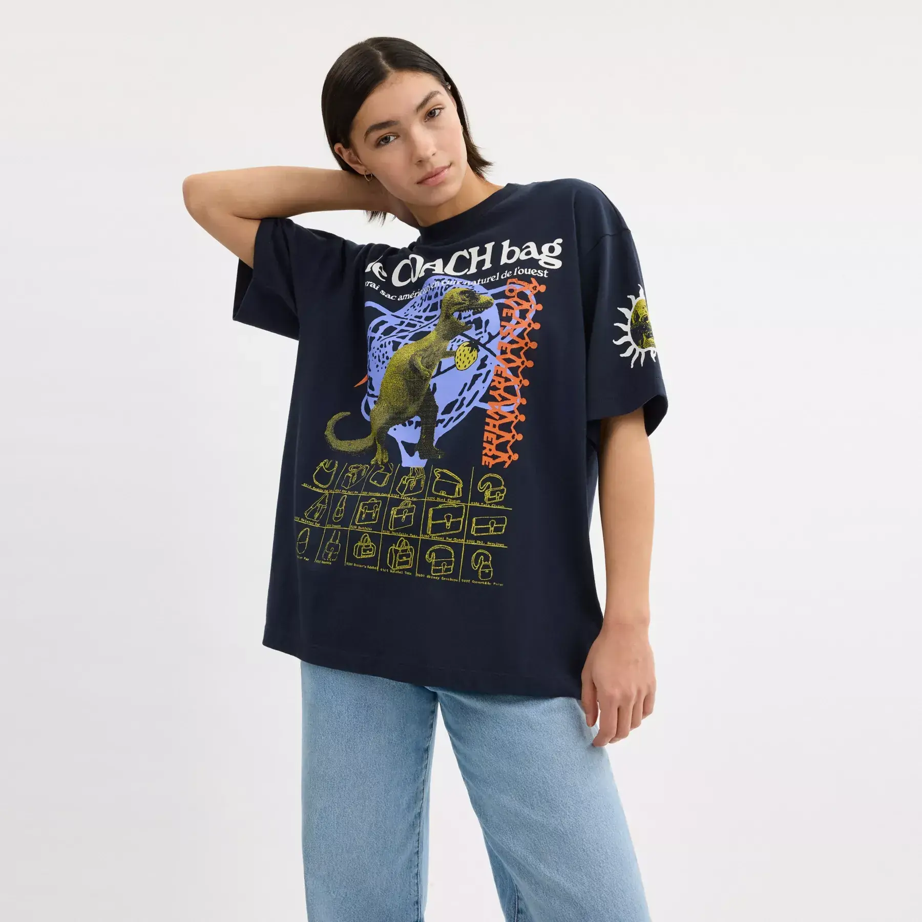,This soft cotton T-shirt features a playful collage of Coach icons past and present from artist Cody DeFranco. The relaxed-fit silhouette is finished with a ribbed crew neckline.