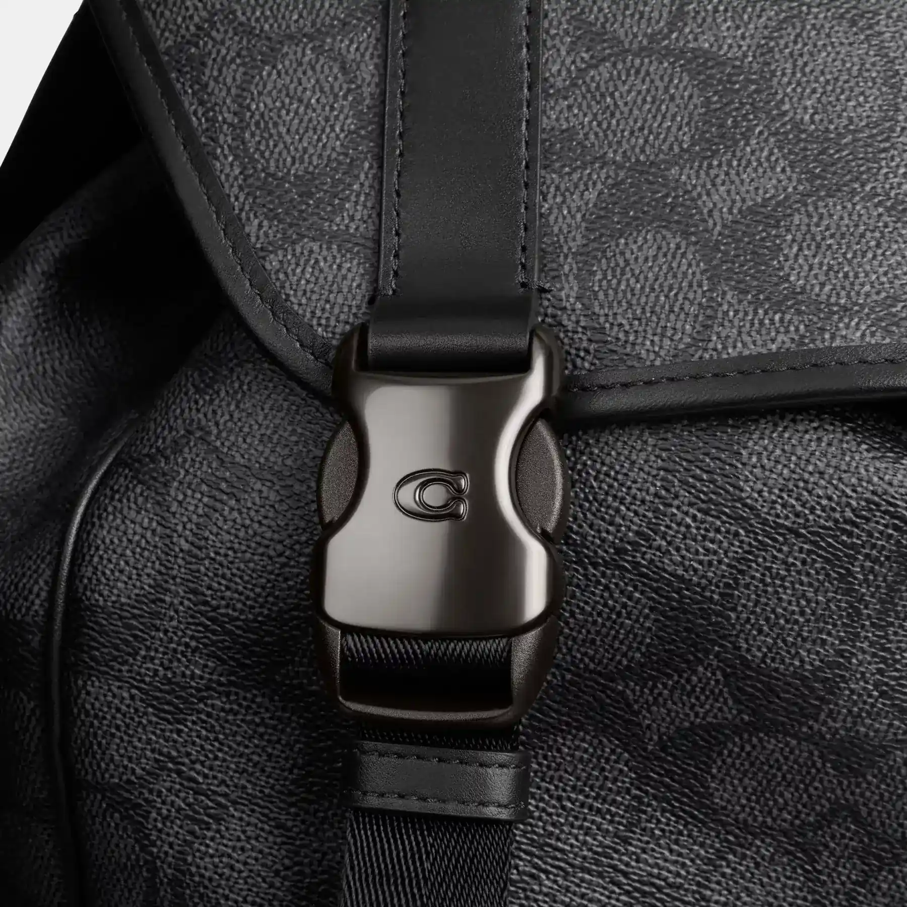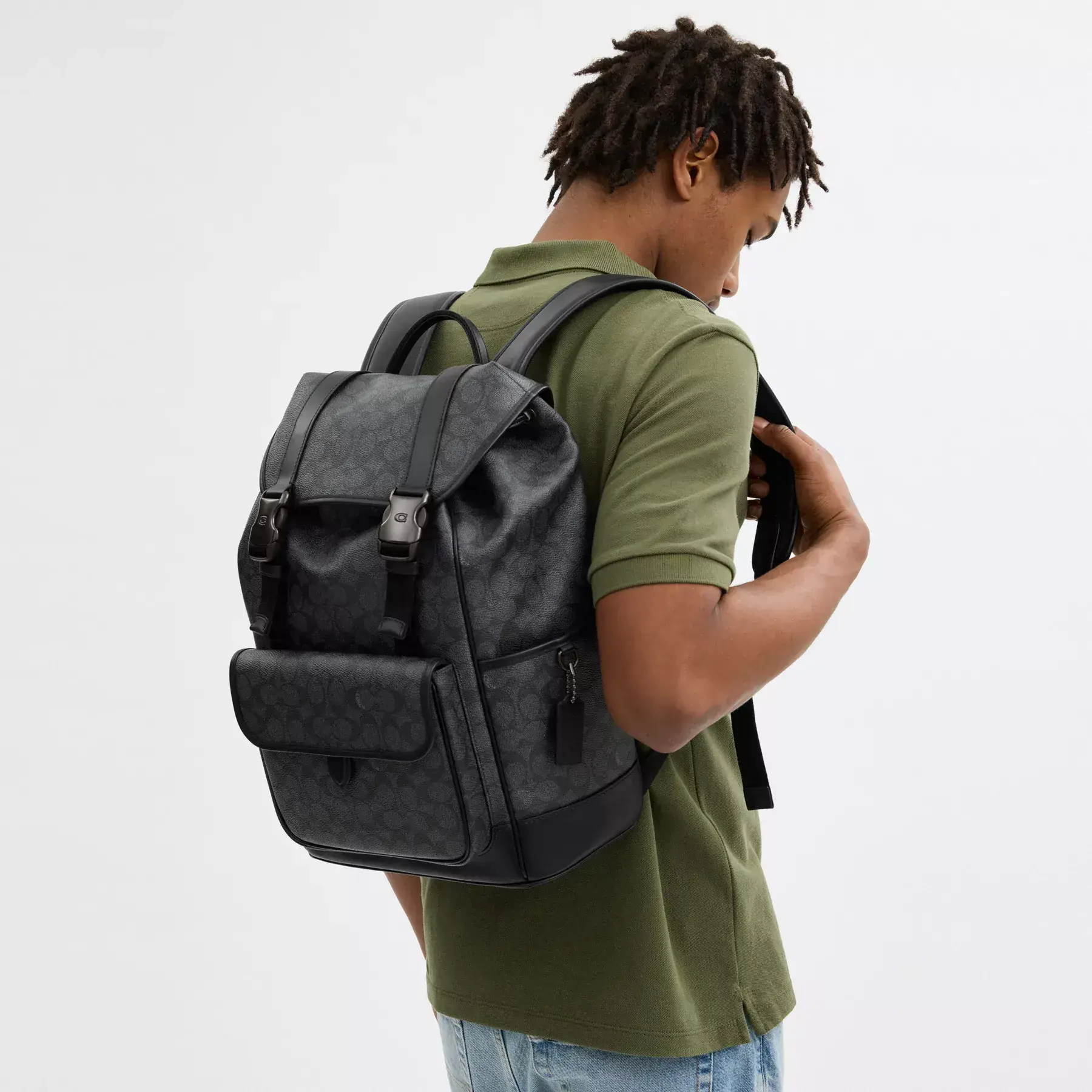 Made for a life in constant motion, the League keeps your game plan on track. Crafted of our Signature canvas and refined leather, this roomy backpack is a comfortable choice for every day with its padded back and straps. Organized with multiple pockets inside and out, the sporty style has a dedicated laptop sleeve and plenty of space for notebooks, water bottles and other essentials. An exterior zipper gives easy access to the main compartment.