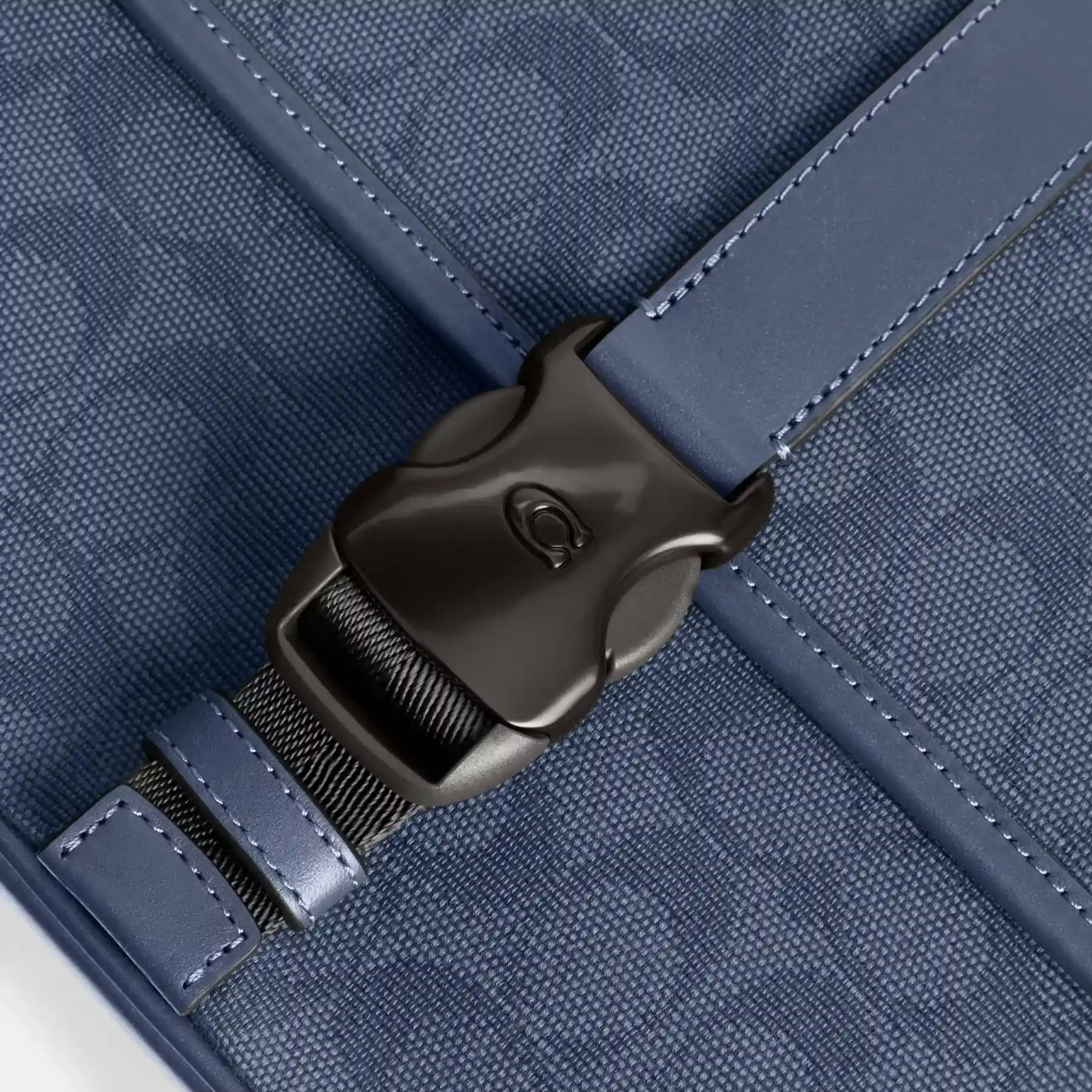Made for a life in constant motion, the League keeps your game plan on track. Crafted of refined leather and our durable Signature canvas jacquard created from certified organic cotton made without the use of harmful chemical fertilizers or pesticides, this streamlined messenger bag has an open interior compartment with room for a tablet, multifunction pockets for organizing gadgets and an exterior pocket for easy access to essentials. It’s finished with our Signature speedclip closure and an adjustable strap for hands-free convenience.
