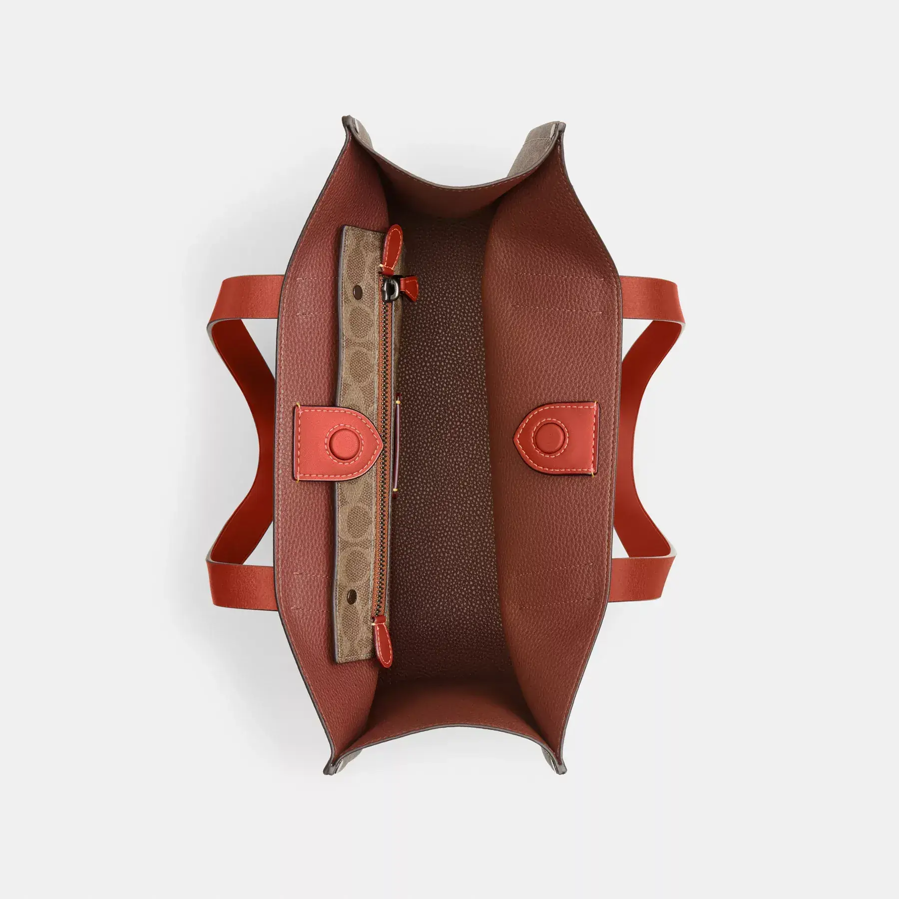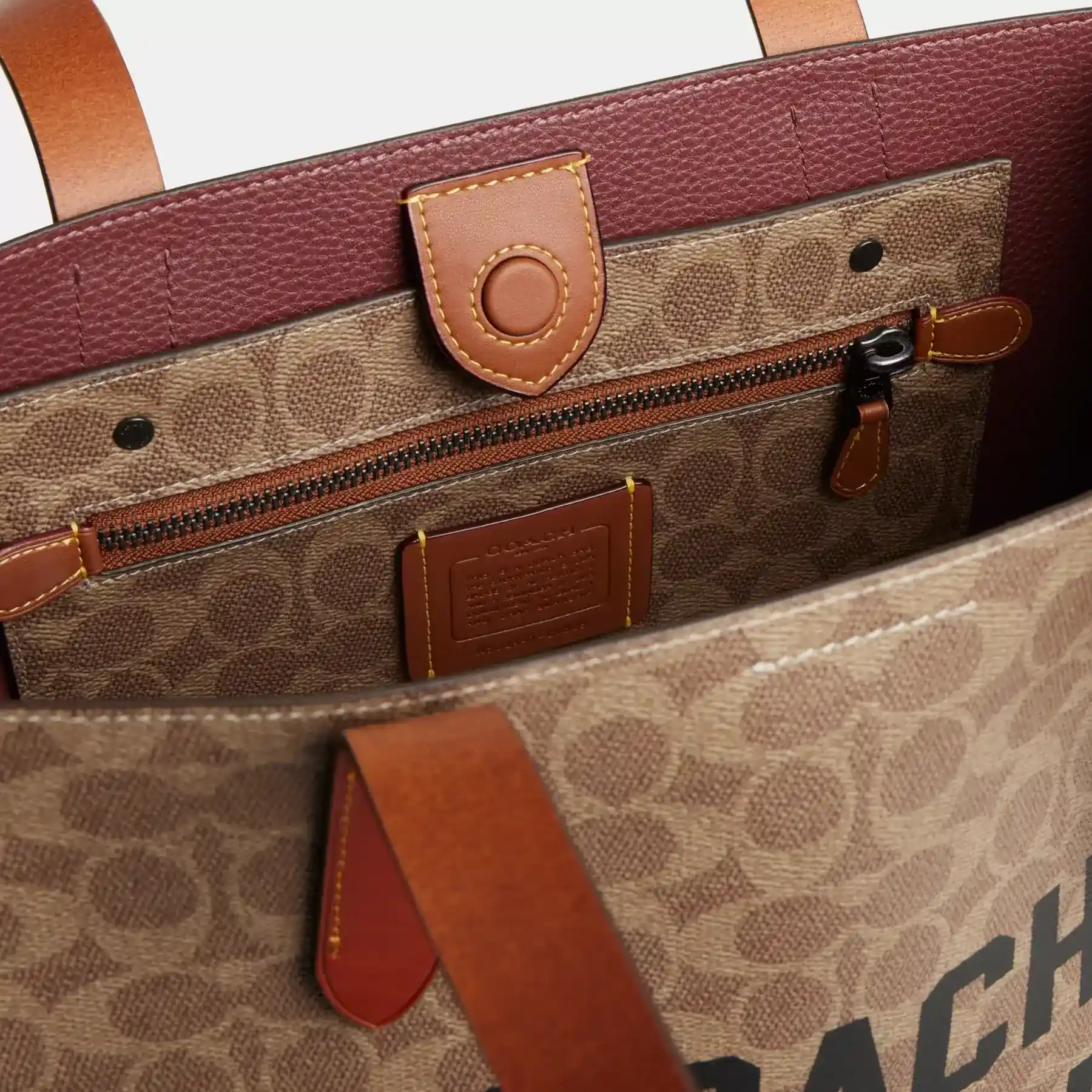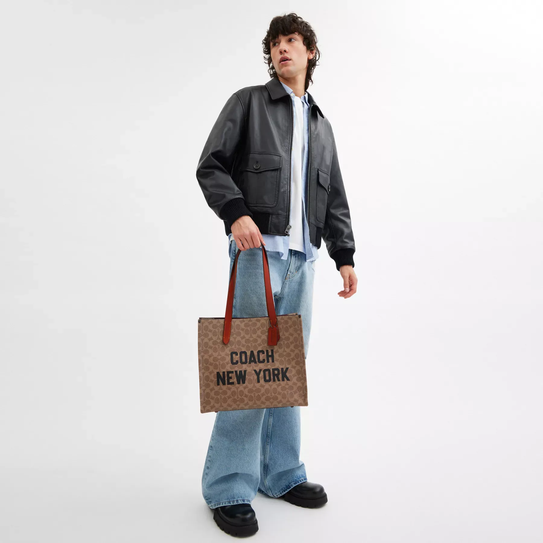 Relay Tote Bag 34 In Signature Canvas With Coach Graphic Tan Multi