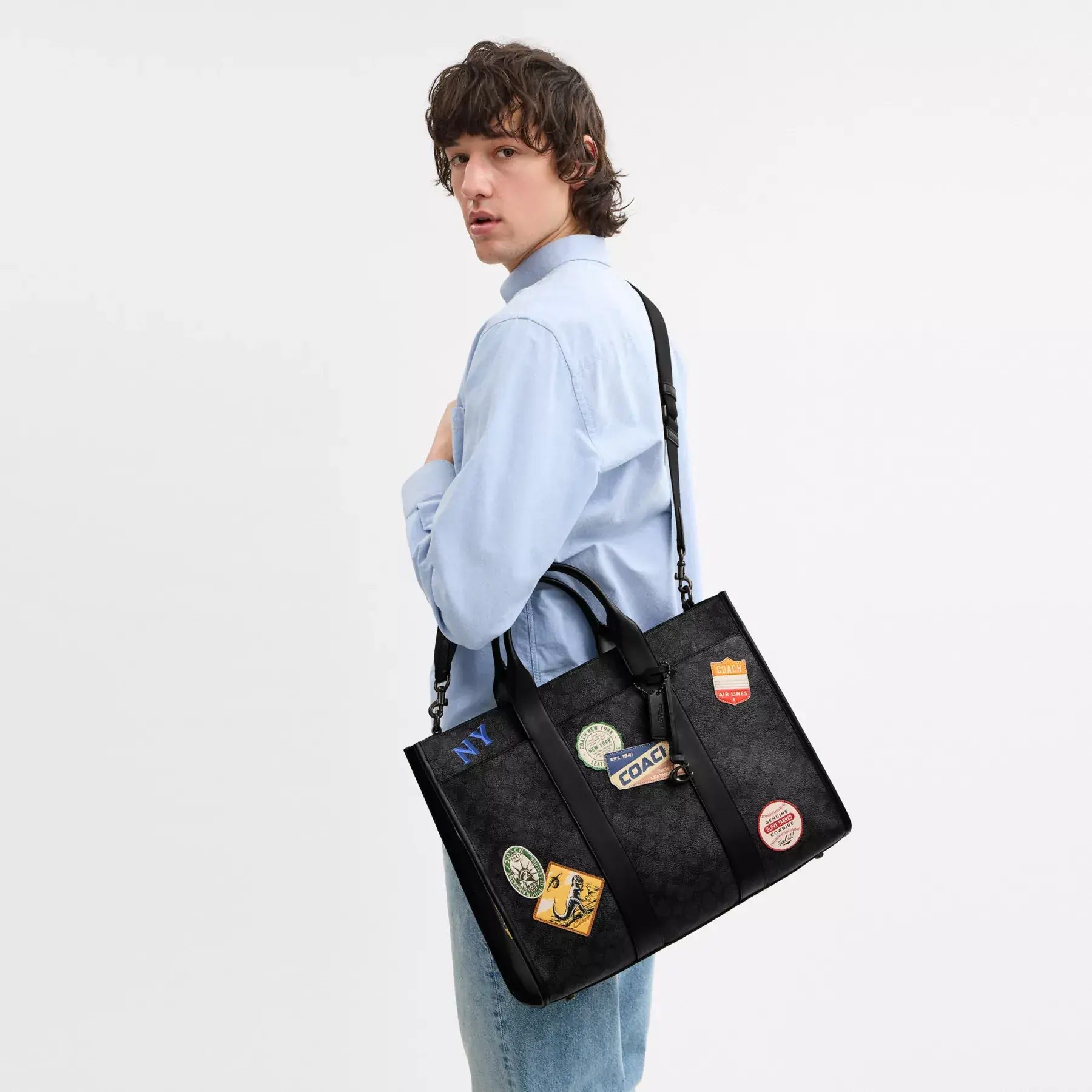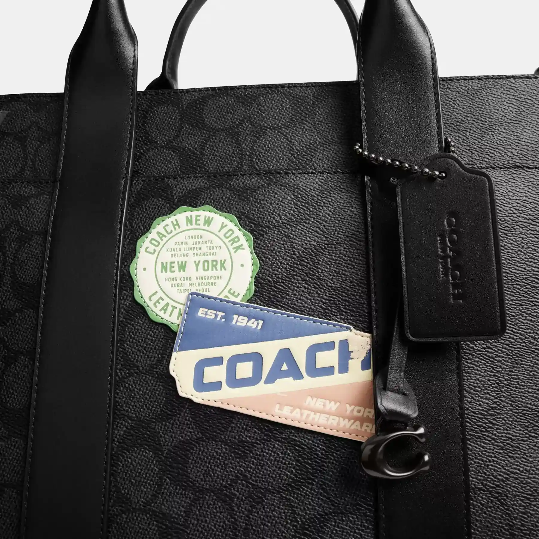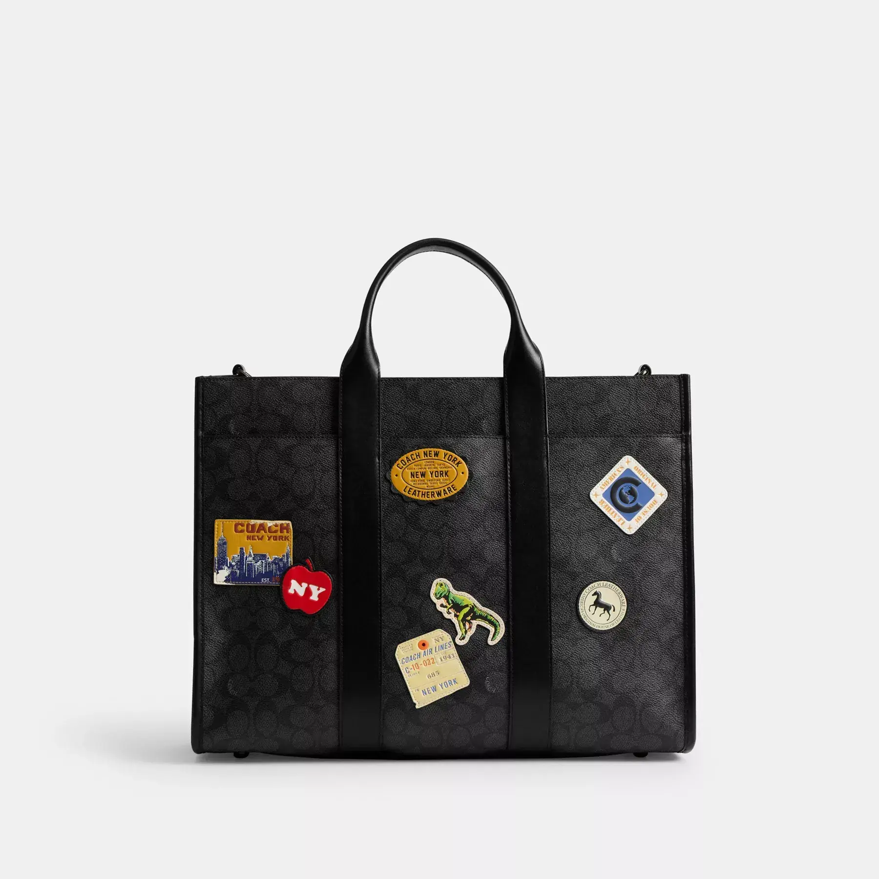 Wesley Tote In Signature Canvas With Patches Charcoal Multi