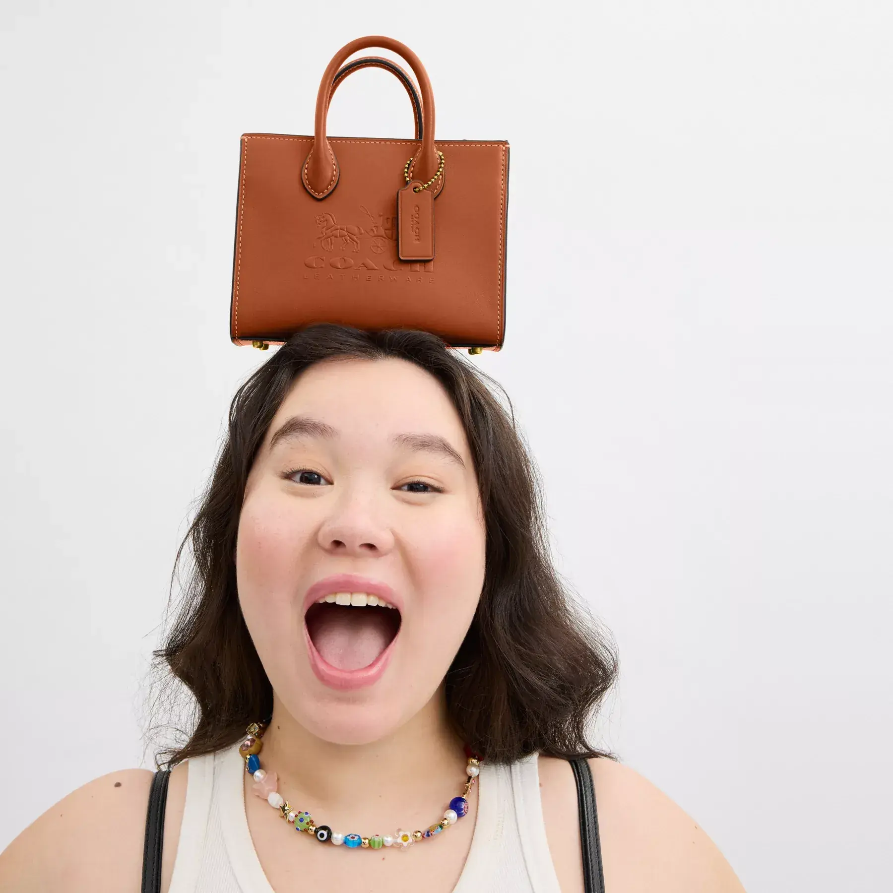 Bring your A game with our Ace Tote, a compact carryall made to hold all the essentials. Crafted of refined leather molded with our iconic Horse and Carriage motif, the petite 17 is smaller than the 26. With space for a phone, keys, cards and cash, carry by the top handles or wear on the shoulder and crossbody with the sporty detachable webbing strap.