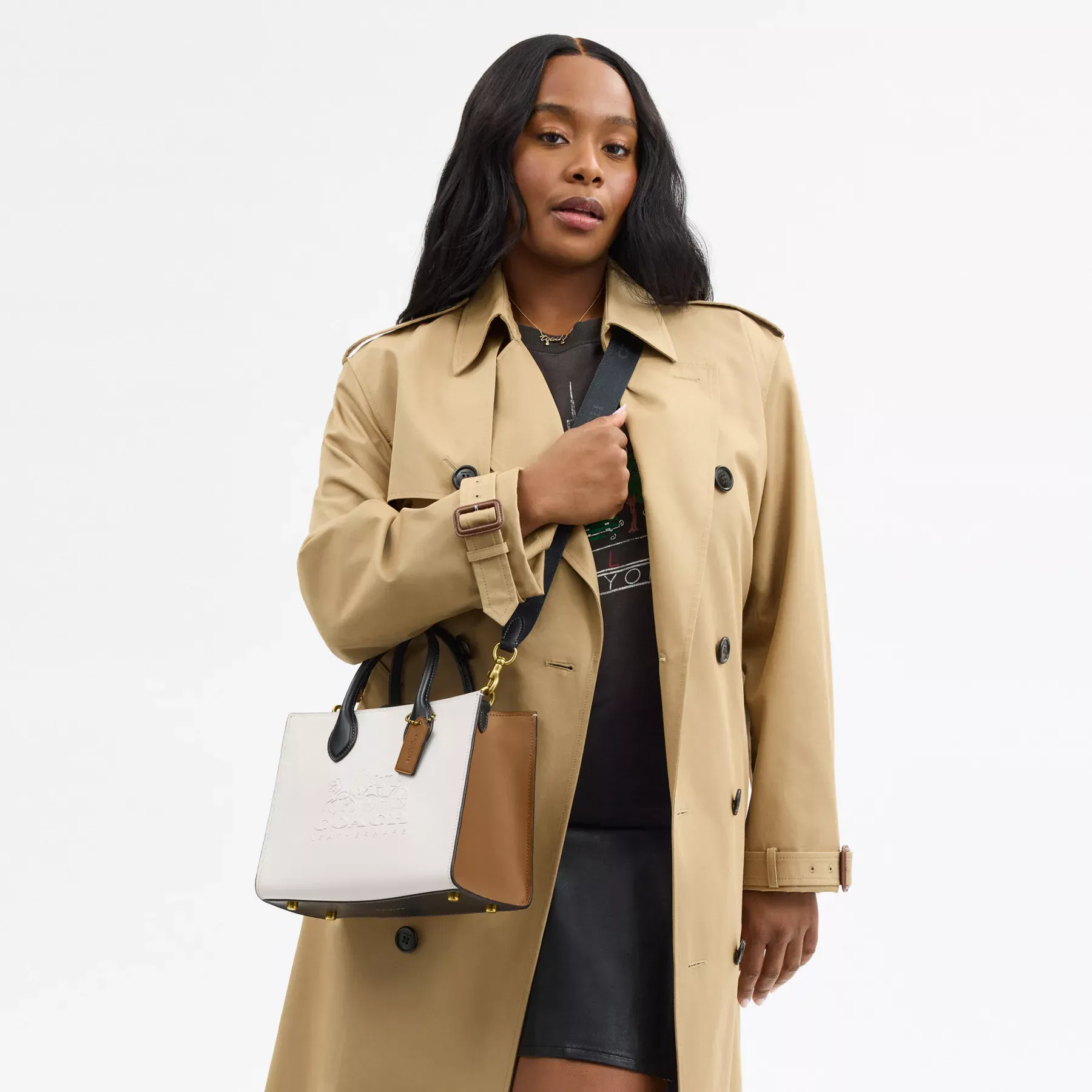 - Detachable strap with 59.5cm drop for shoulder or crossbody wear
