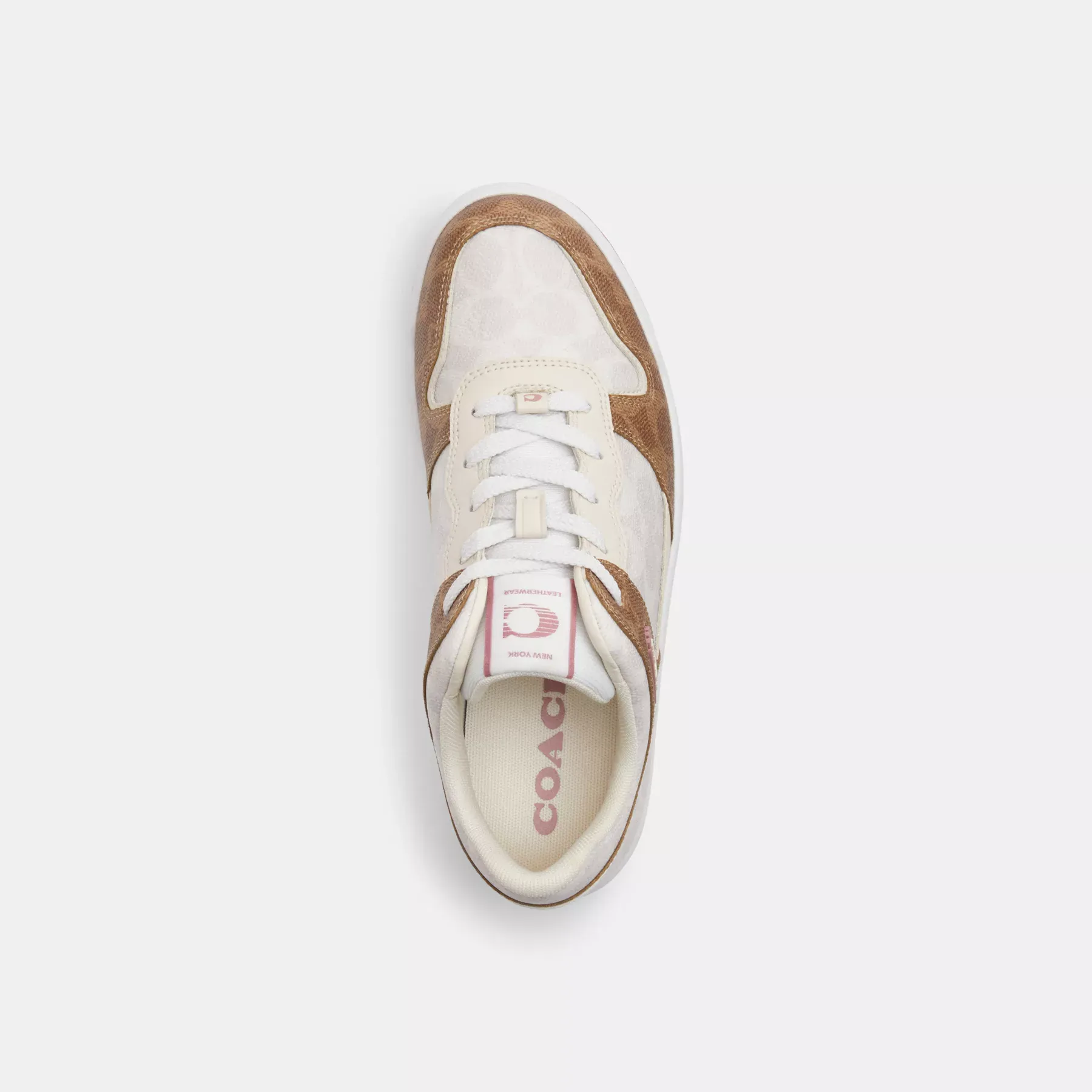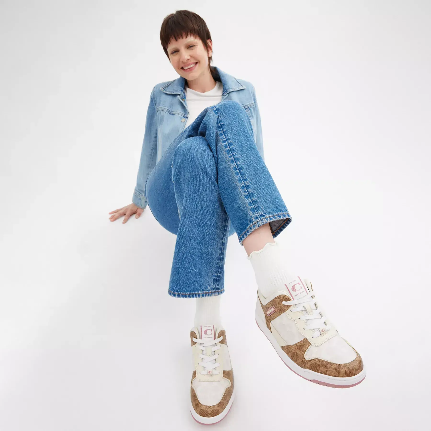 ,Inspired by traditional court shoes, our C201 sneaker is crafted in a two-tone mix of our Signature canvas and smooth leather. The versatile low-top features a grooved sole for great traction.