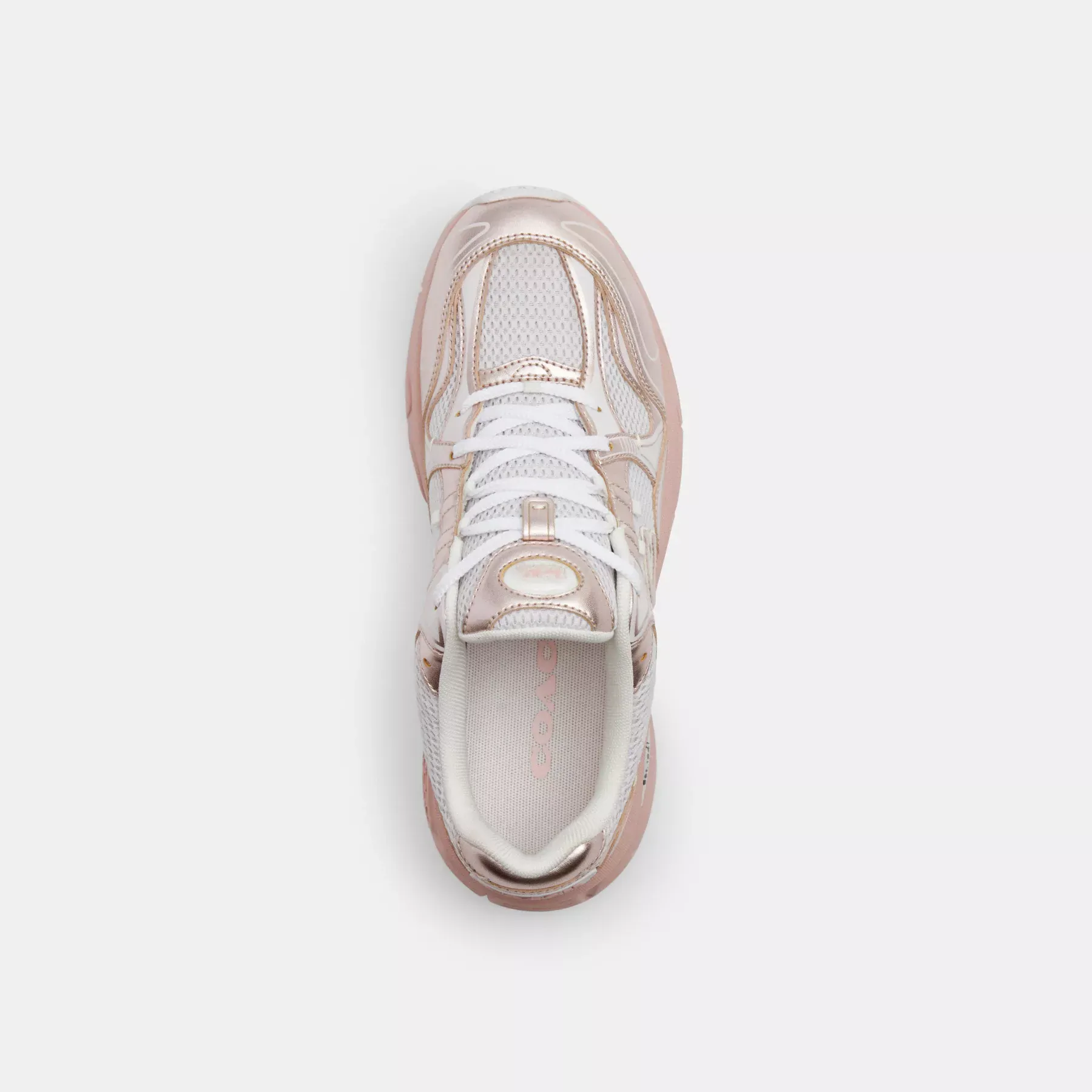 - Metallic leather and mesh upper