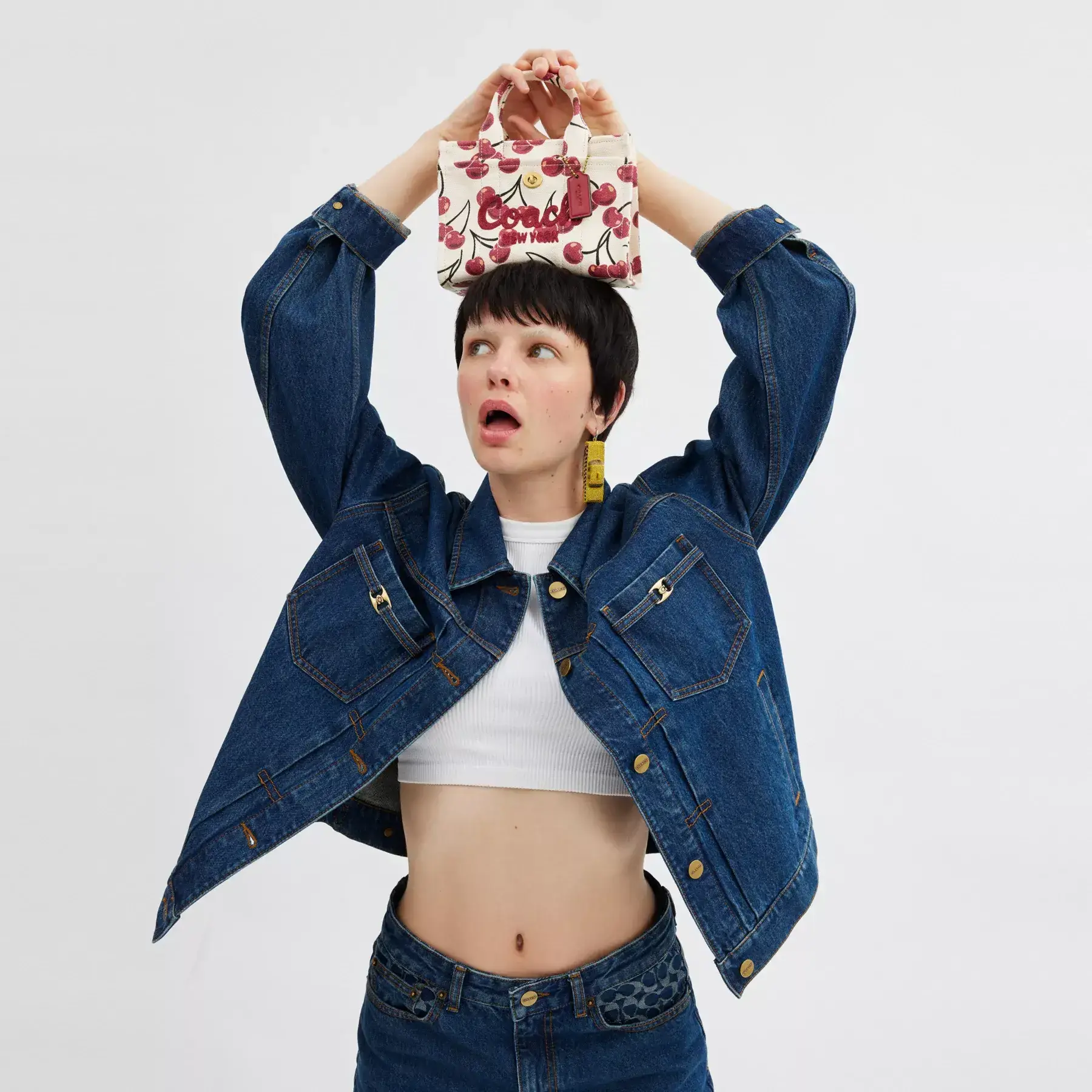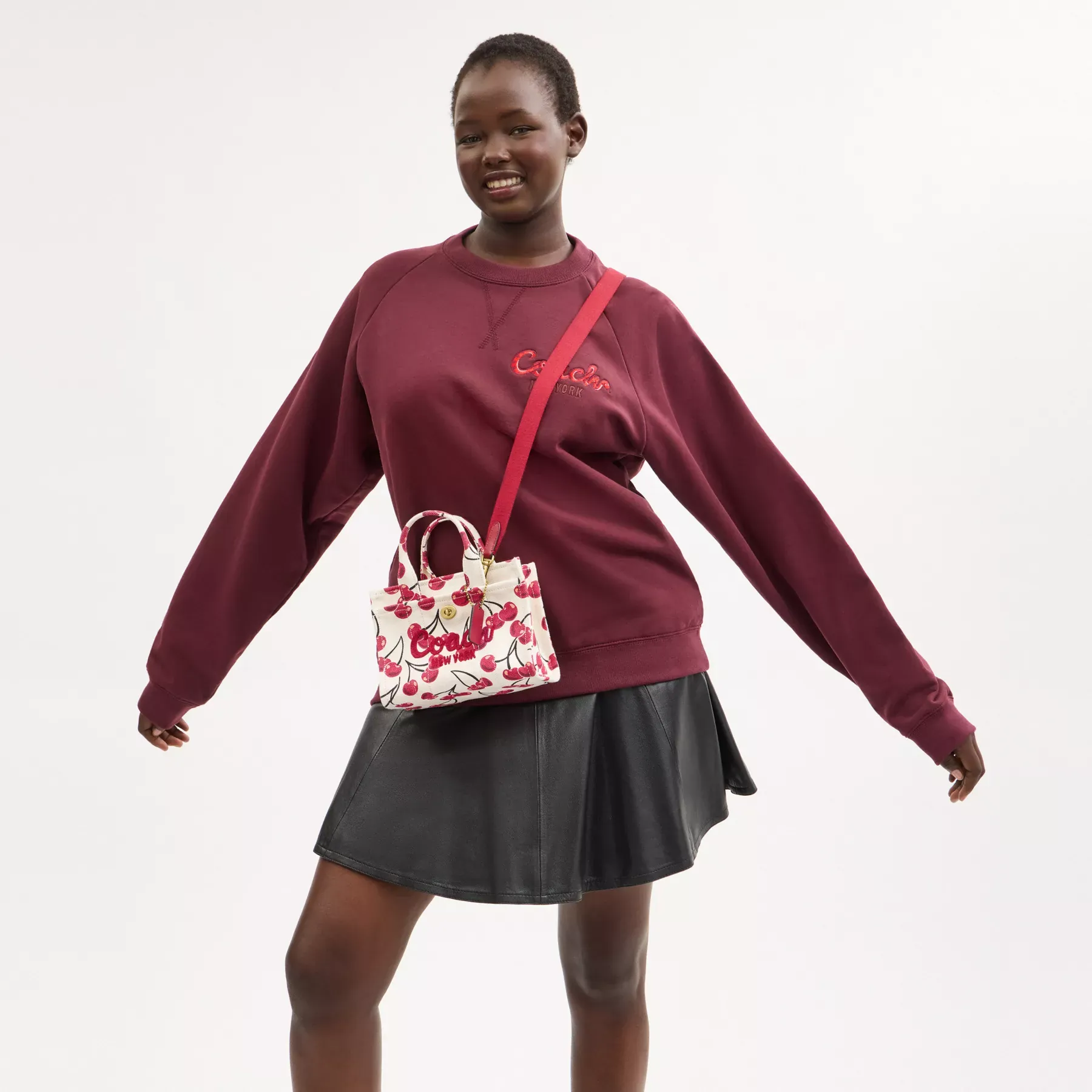 Carry as much (or as little) as you like with our lightweight Cargo tote. Detailed with our cursive Coach script embroidery and iconic turnlock closure, this petite 20 has an open interior with room for a phone, two outside pockets for easy organization and a removable webbing strap for shoulder or crossbody wear. Printed with a cheerful cherry motif, this versatile canvas style is crafted with 100% cotton* sourced from farms that use regenerative agricultural practices—those that help to maintain and rejuvenate land, increase biological diversity and soil health, and could lead to increased carbon absorption. It’s inspired by our commitment to reducing our impact on the planet. Now no matter where you go with it, you’ll always be toting around a little extra love for the planet.