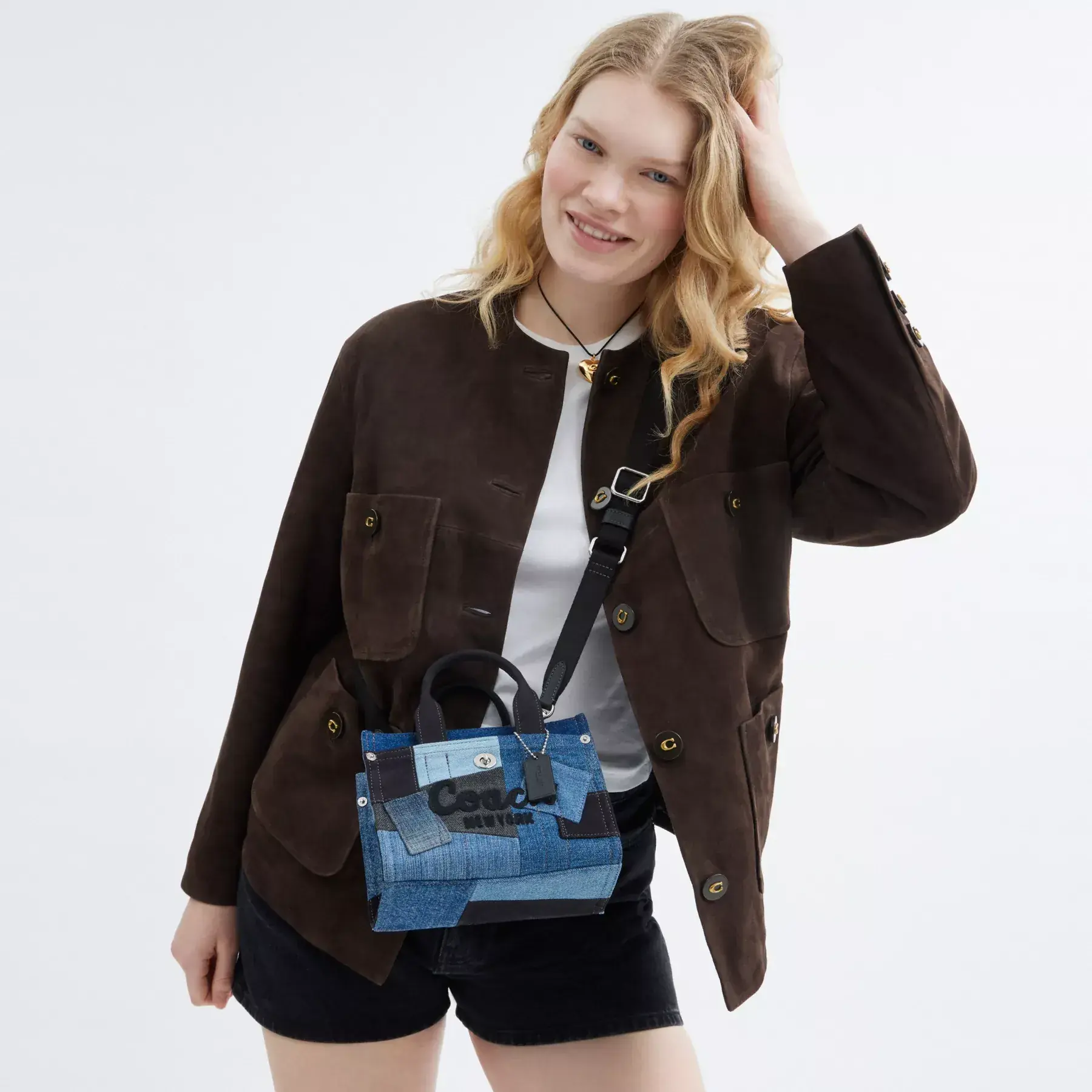 Carry as much (or as little) as you like with our lightweight Cargo tote. Detailed with our cursive Coach script embroidery and iconic turnlock closure, this petite 20 has an open interior with room for a phone, two outside pockets for easy organization and a removable webbing strap for shoulder or crossbody wear. Designed with smooth leather accents, the versatile style is crafted to last from beautifully loveworn repurposed denim. It’s inspired by the endless possibilities of secondhand garments and our commitment to reducing our impact on the planet.