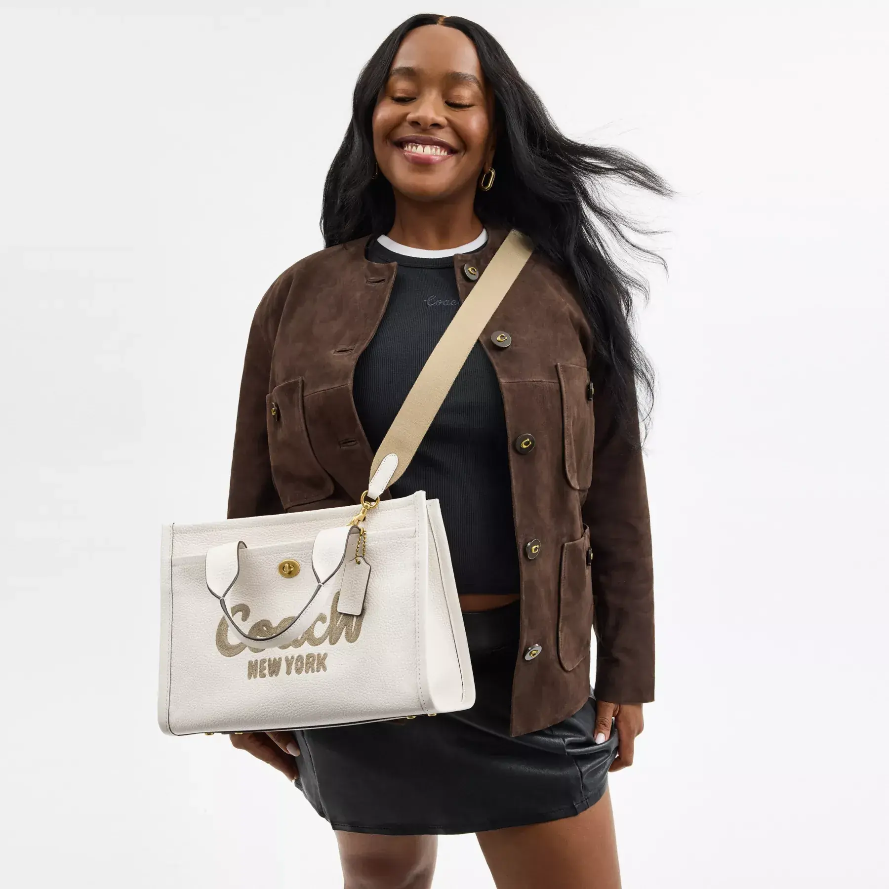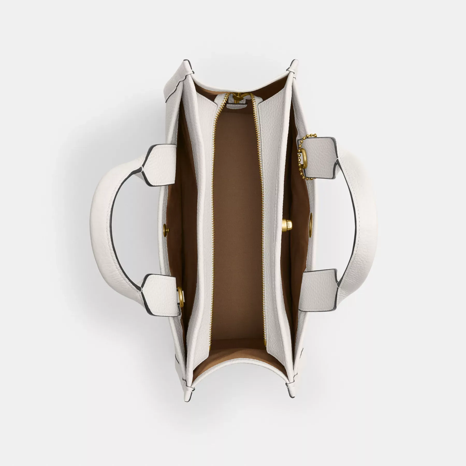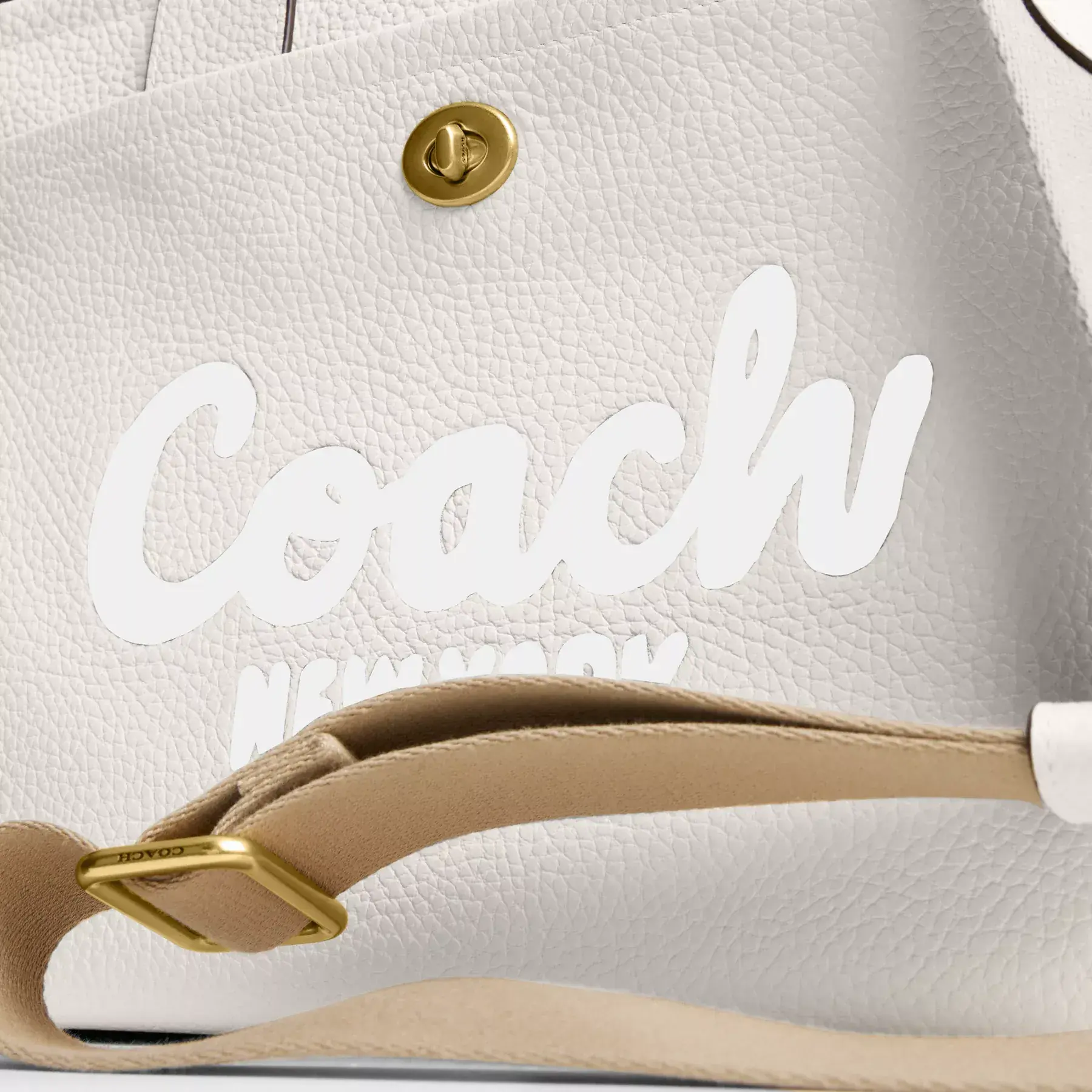 Carry as much (or as little) as you like with our lightweight Cargo tote. Detailed with our cursive Coach script embroidery and iconic turnlock closure, this spacious carryall is crafted of embossed pebble leather. It has an open interior with room for a 13″ laptop, two outside pockets for easy organization and a removable recycled polyester webbing strap for shoulder or crossbody wear.
