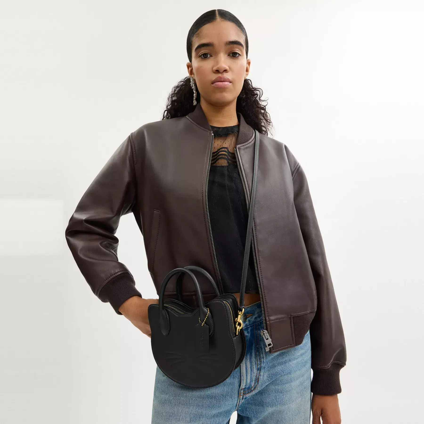 One cool cat. The whimsical style is crafted of our buttery soft glovetanned leather. Designed to fit all your essentials for day or night, it can be carried by the top handles or worn crossbody. (It’s the cat’s meow.)
