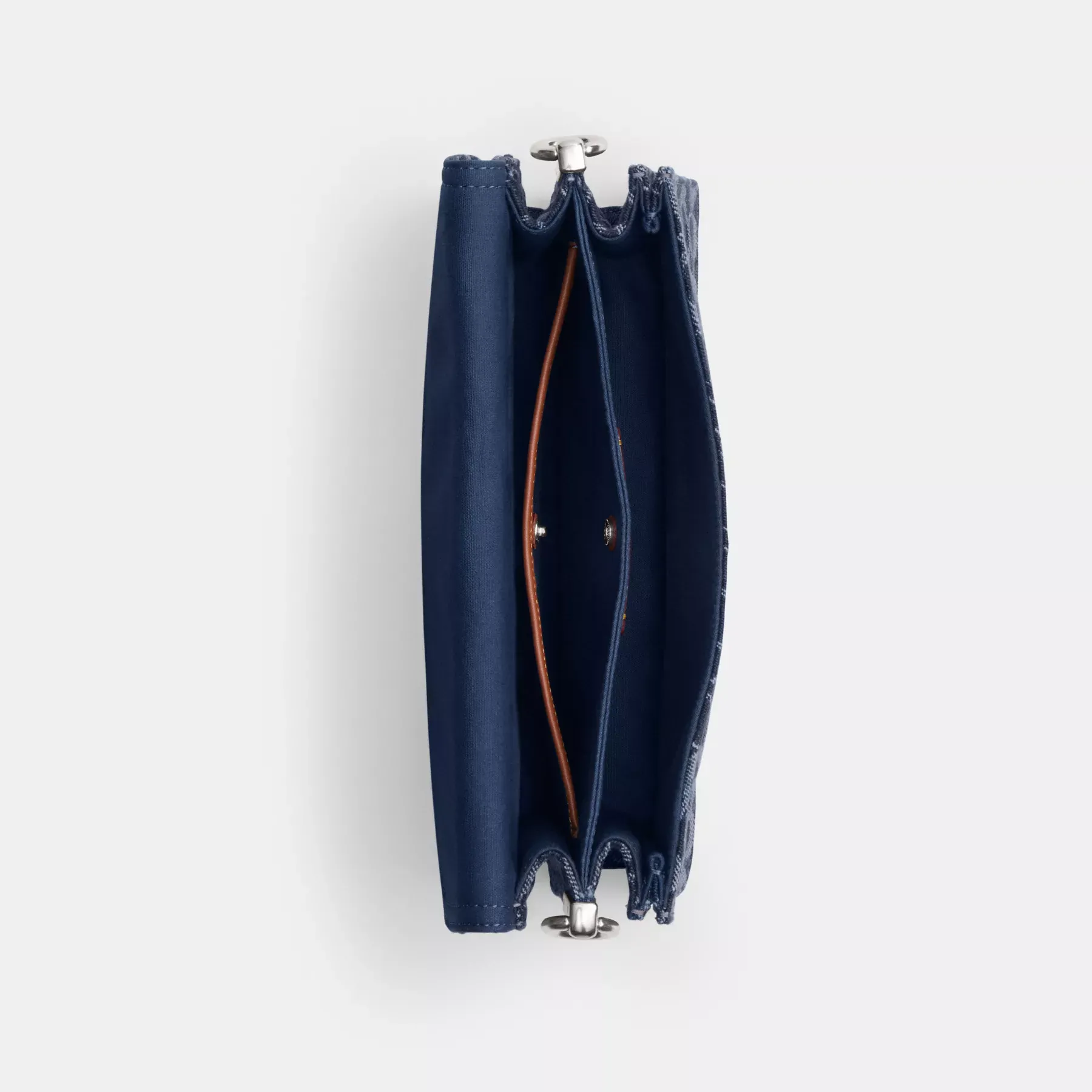 - Signature denim and refined calf leather
