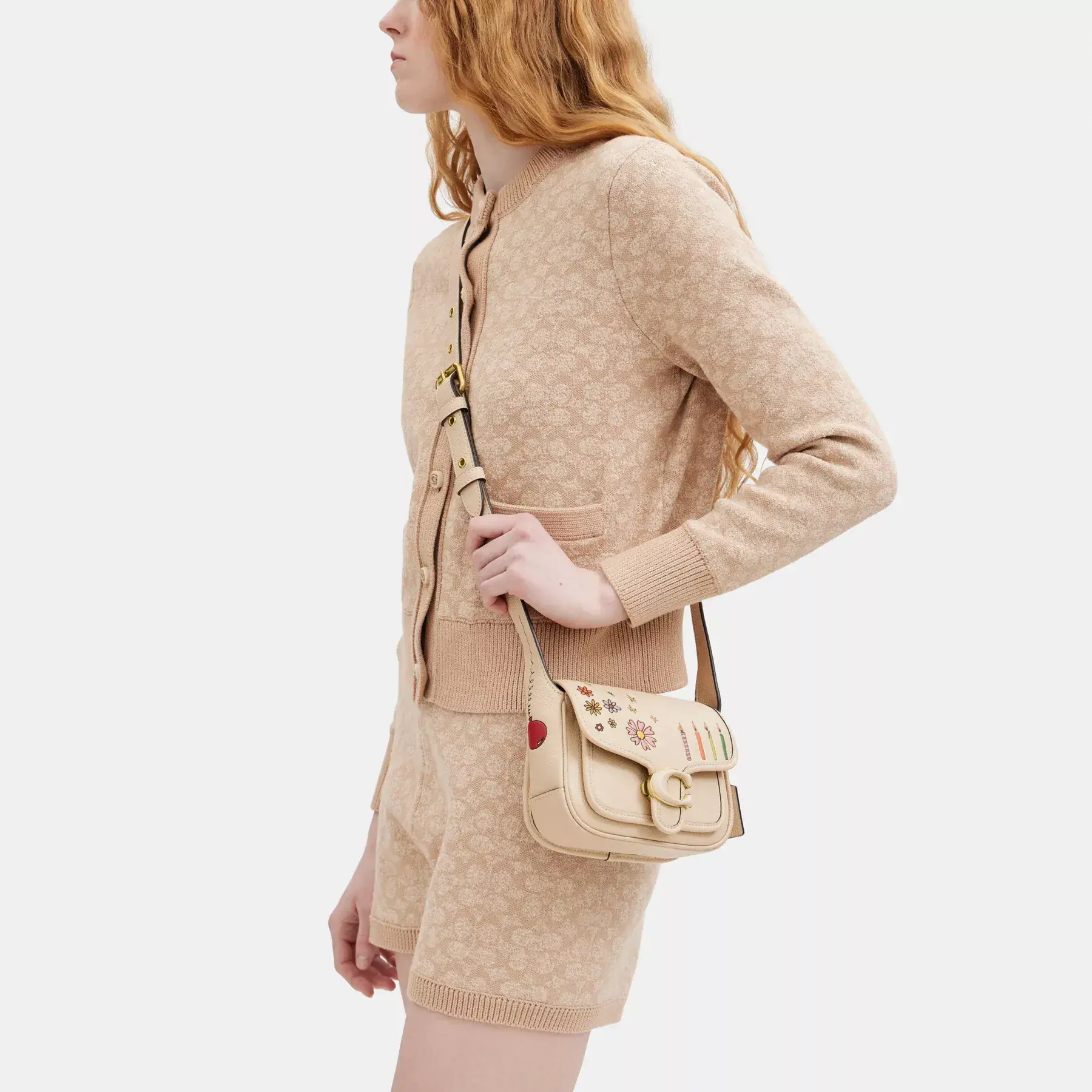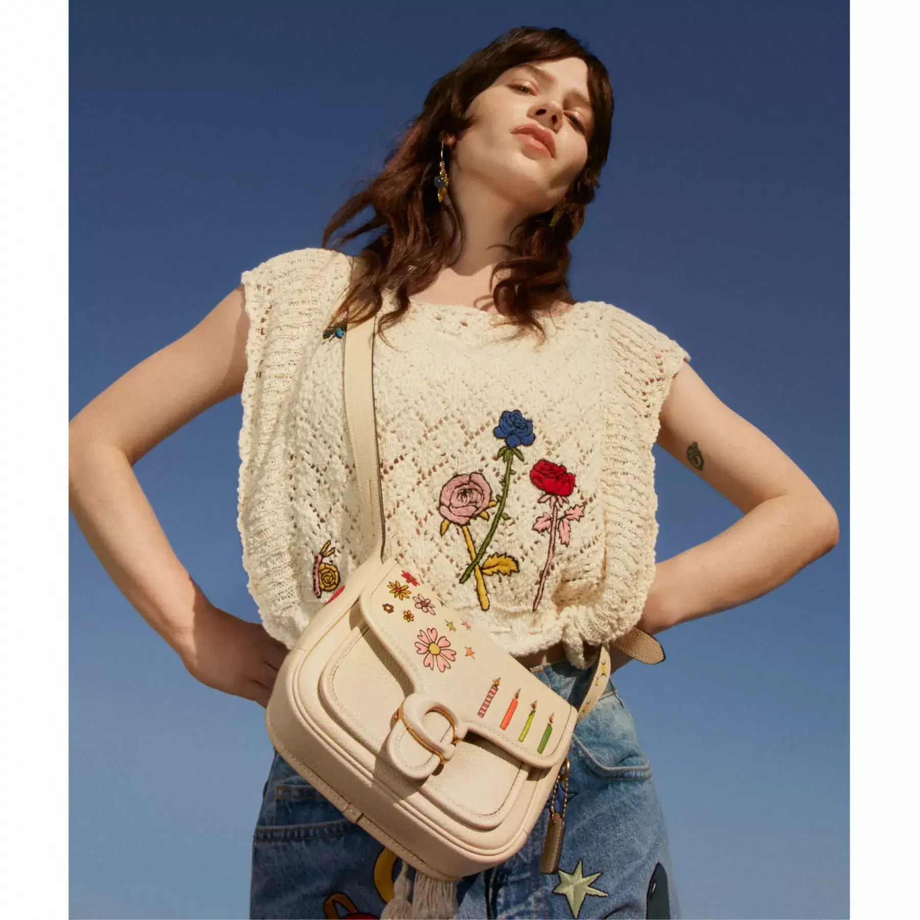 A special collection, Coach x Observed By Us celebrates the little things—both real and imagined—that give us joy. It combines our all-American attitude with the whimsical spirit of Observed By Us, a collaboration between artist Jessica Herschko and actress Kirsten Dunst. Featuring colorful, hand-drawn illustrations, each piece tells a story that imbues everyday subjects with a sense of wonder. Crafted of polished pebble leather and refined leather, the versatile Tabby Messenger 19 is a modern take on an archival 1970s Coach design. Detailed with their playful motifs, the compact structured bag has secure interior snap and zip pockets for easy organization and an outside pocket to keep essentials close at hand. The wide adjustable crossbody strap offers all day comfort. It’s finished with our Signature hardware for an iconic touch.