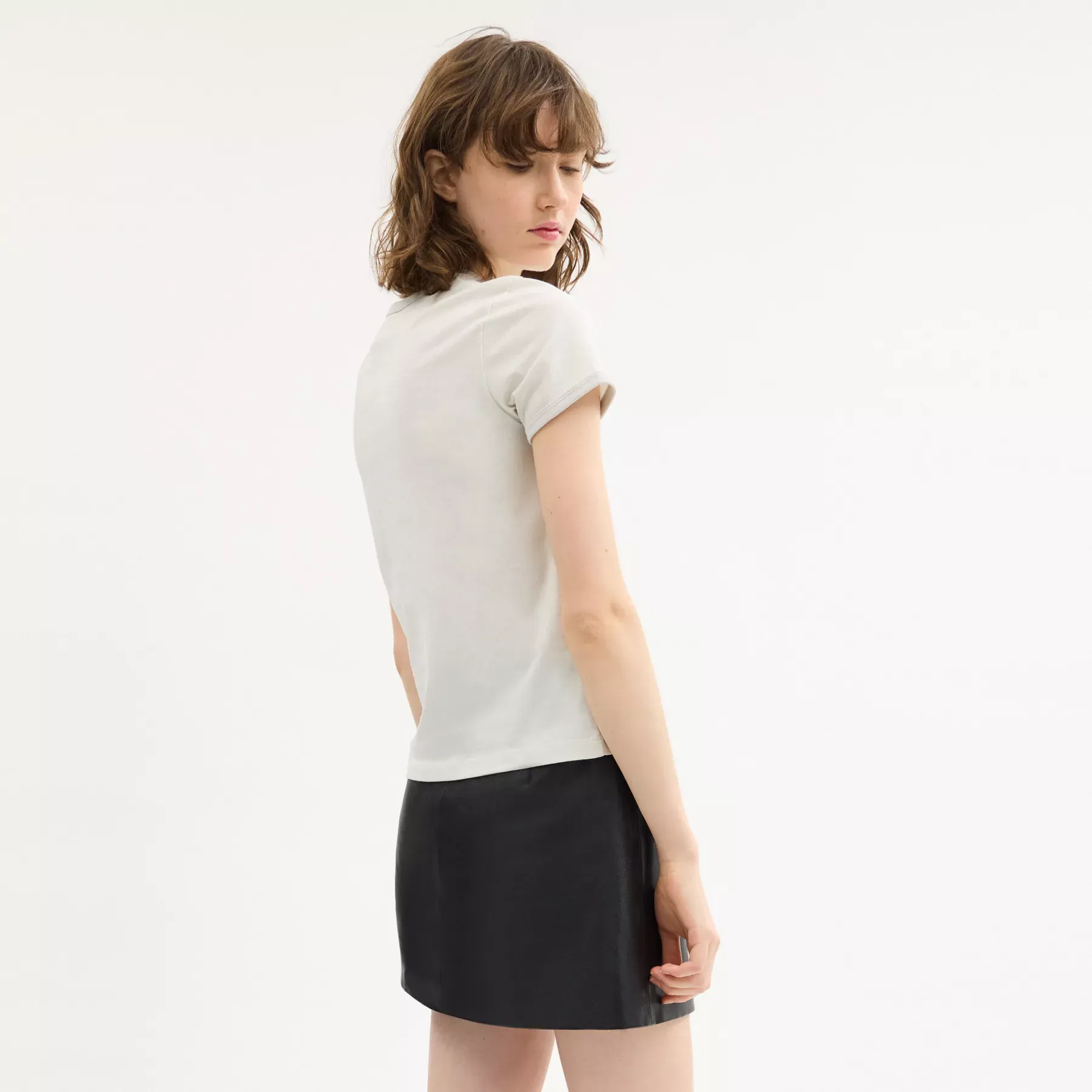 ,Coach celebrates the beloved cartoon sailor Popeye in a special collection featuring early black and white illustrations of the spinach-loving seaman with a heart of gold. Always there to save the day (with a Tabby in hand, of course), the hero poses on this classic-fit soft cotton ringer T-shirt finished with contrast trim.
