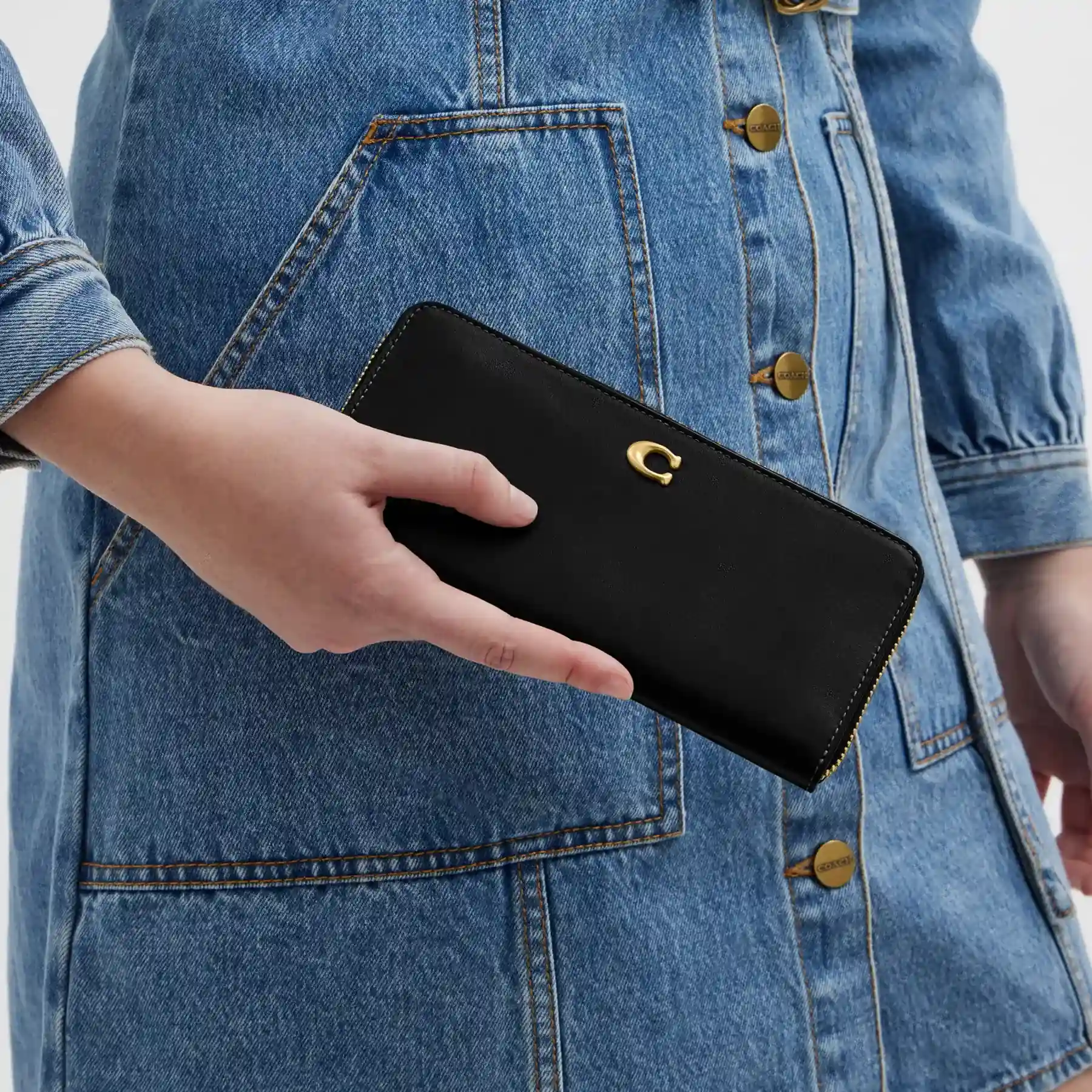 Crafted of refined leather detailed with our Signature hardware, this comprehensive slim wallet keeps cards, ID, coins, bills and receipts neatly organized in a secure zip-around design. It’s finished with an outside slip pocket for easy access to essentials.