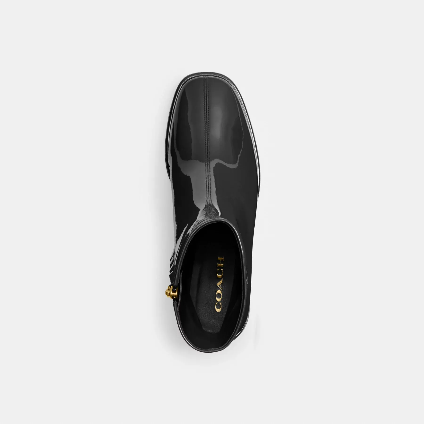 ,A sleek, modern style for every day, our Gigi bootie features a walkable block heel and polished hardware. Crafted of high-shine patent leather, it’s finished with a side zip closure and padded footbed for added comfort.