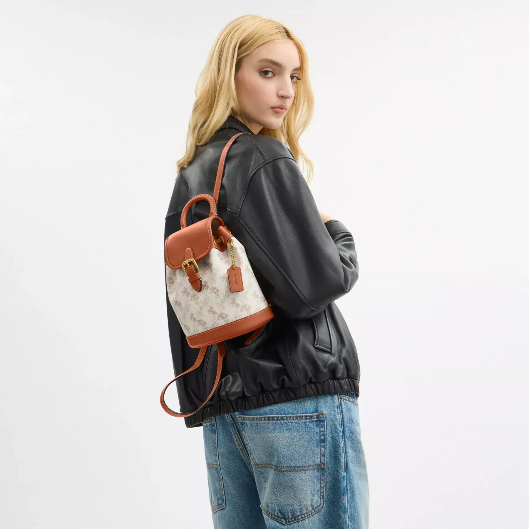 Harper Backpack With Horse And Carriage Print Chalk Burnished Amber