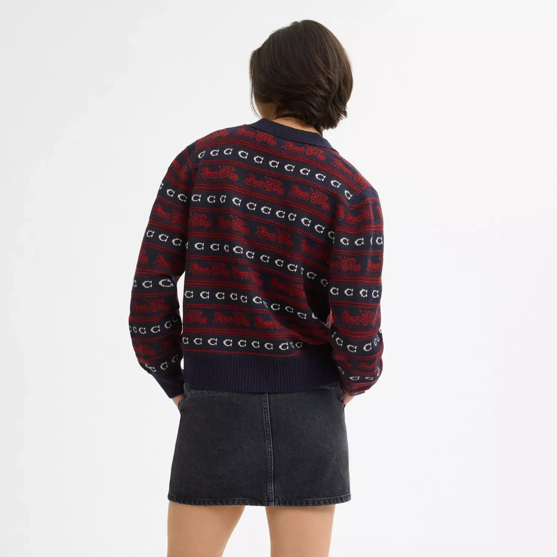 ,Get carried away, this soft wool cardigan sweater features a colorful take on our iconic Horse and Carriage motif accented with our Signature. A great layering piece, the classic-fit style is finished with cozy ribbed trim.