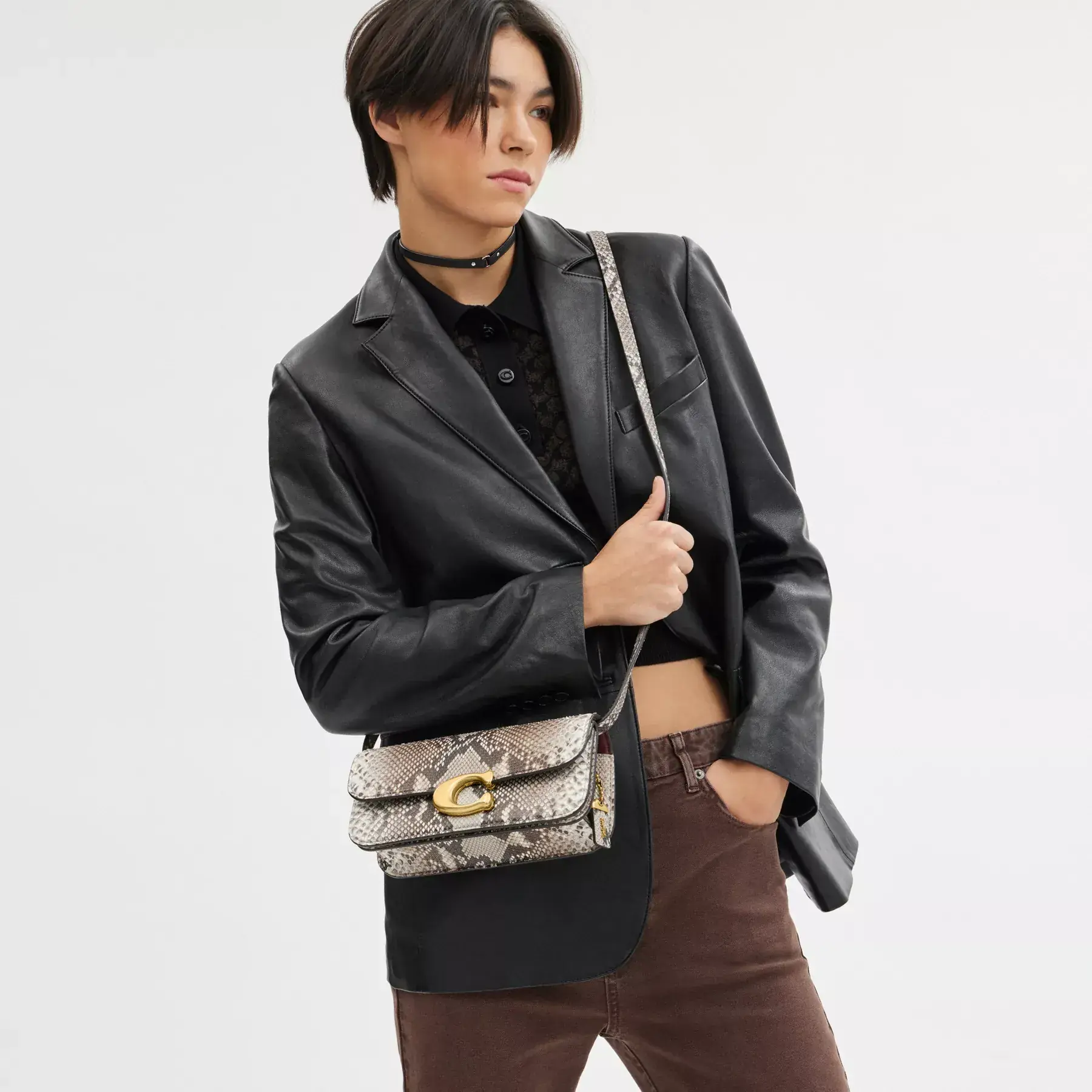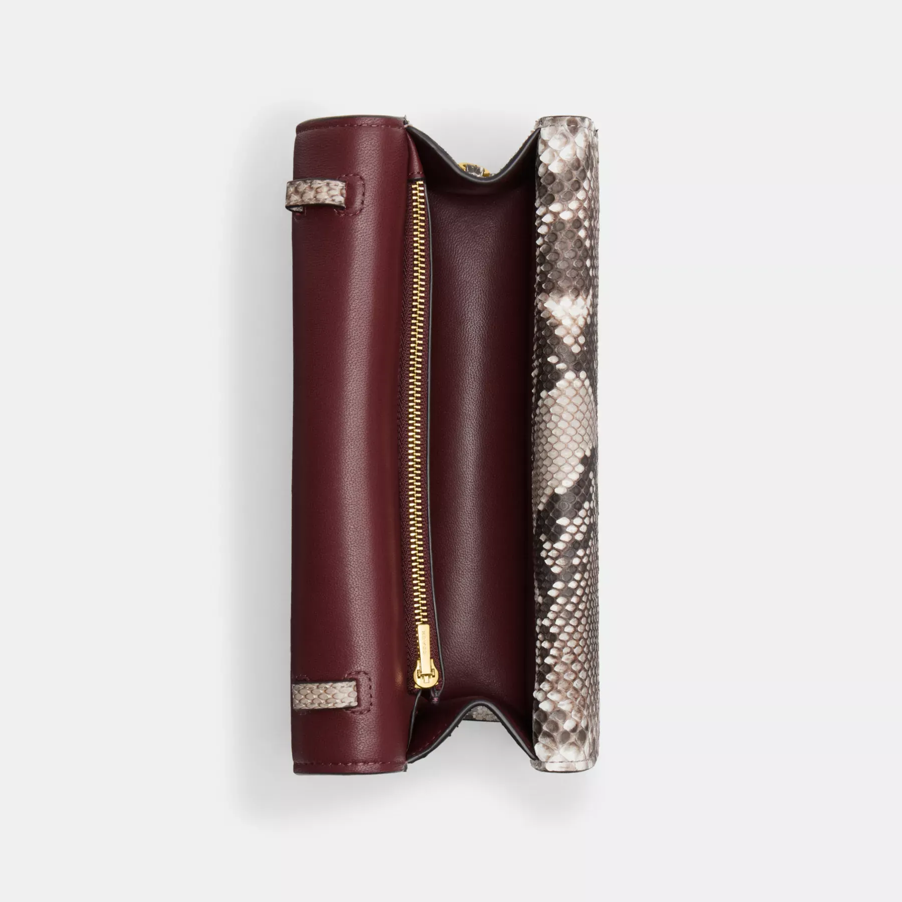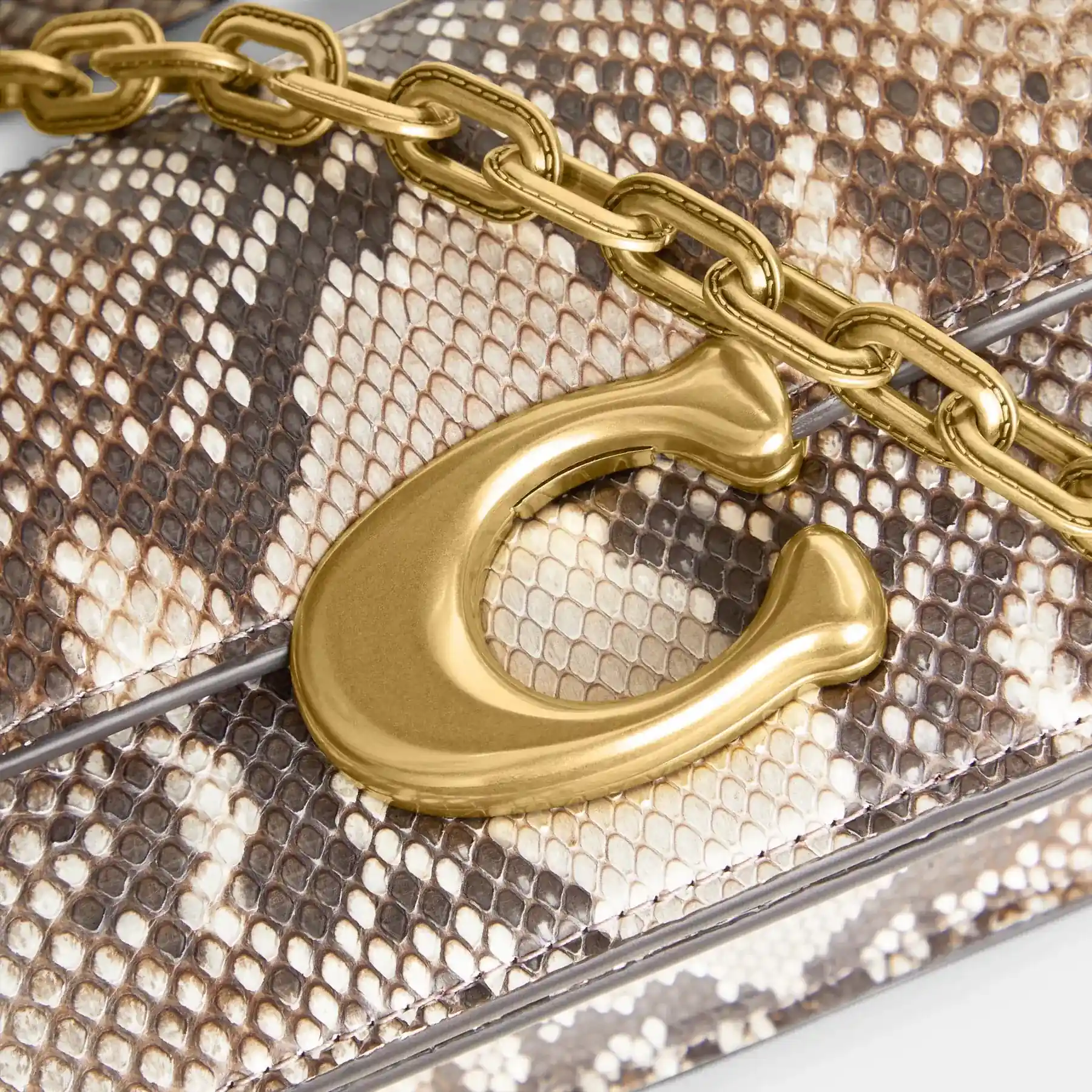 An every day superstar, our Idol is one major mini bag. Crafted of luxurious genuine python, minimally tanned to emphasize its natural beauty and unique markings, the long and lean 23 features an oversized magnetic “C” closure. Perfectly sized for all of your essentials with a gusseted interior and outside pocket, it’s finished with a detachable crossbody strap and a chunky chain-link strap (for when you’re feeling a little fancy).