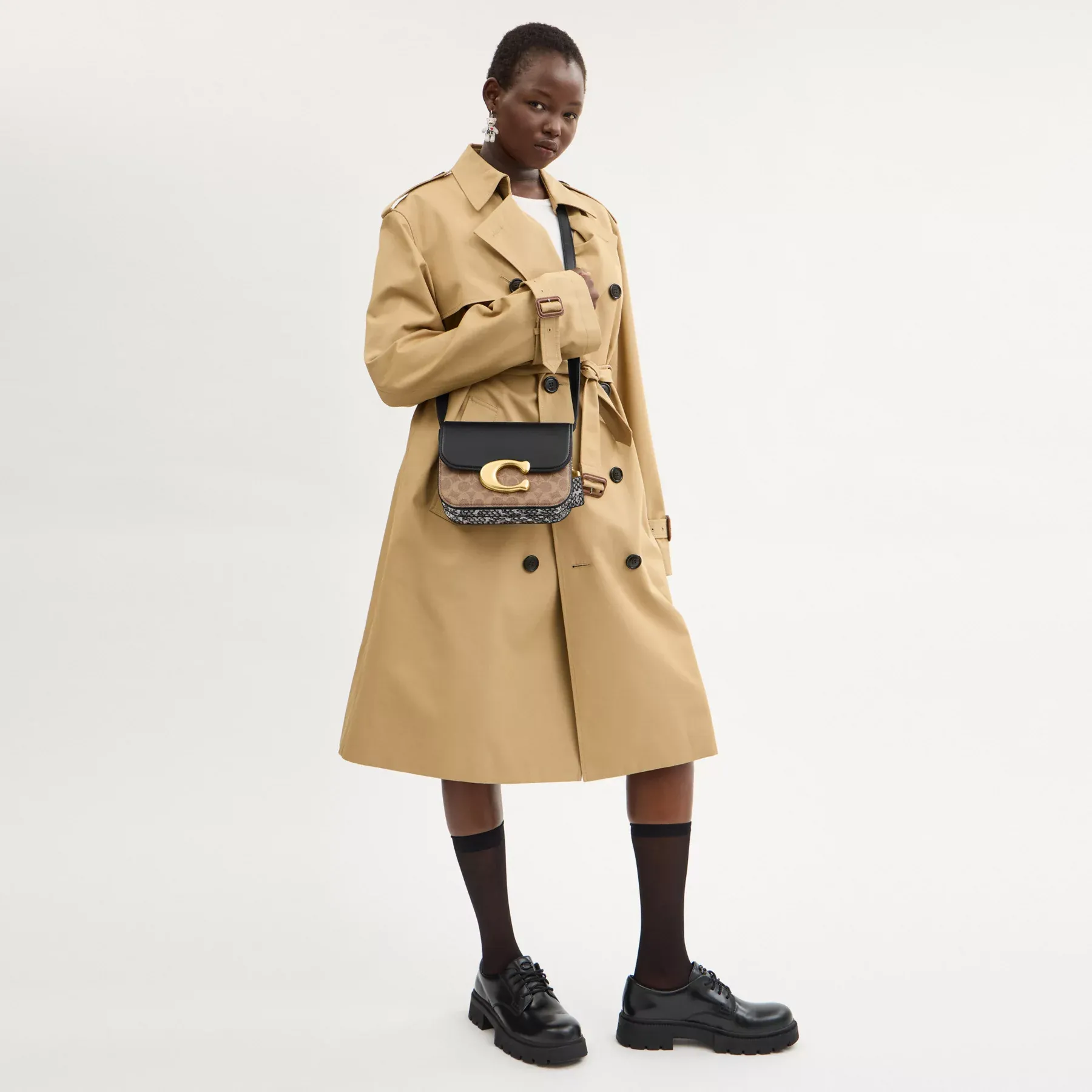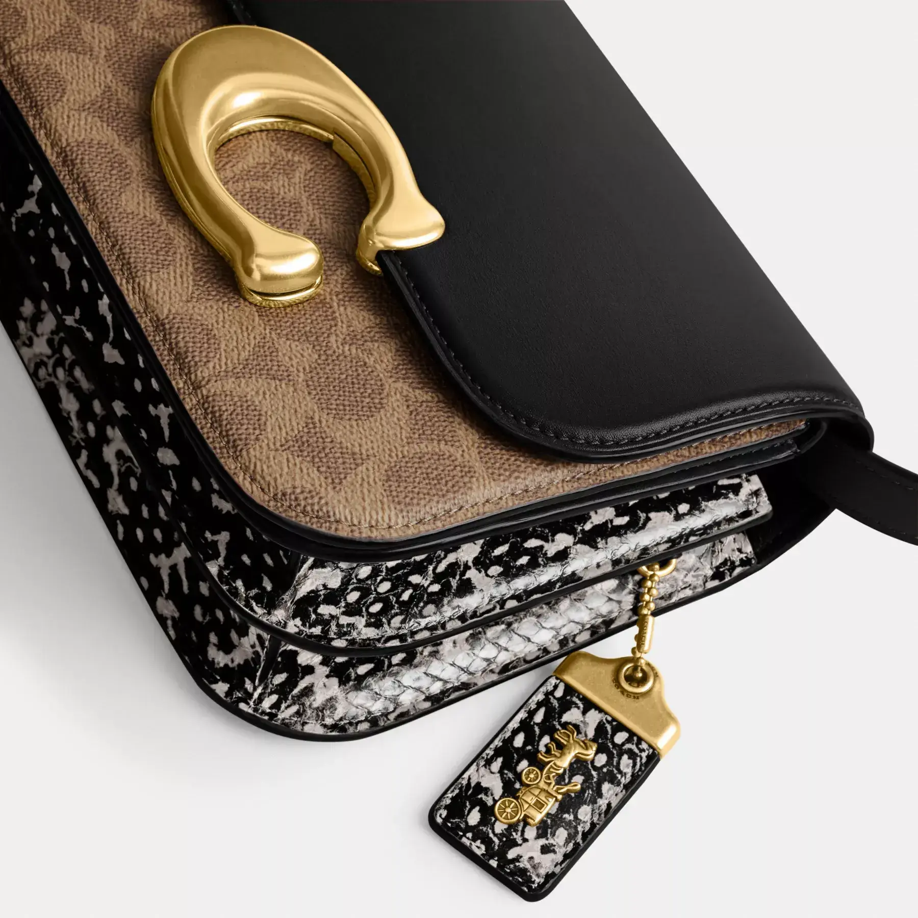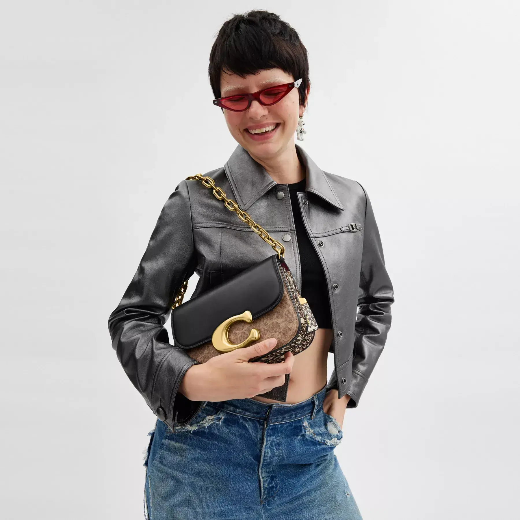An every day superstar, our Idol is one major mini bag. Crafted in a mix of Signature canvas, refined leather and genuine snakeskin, the foldover silhouette features an oversized magnetic “C” closure. Perfectly sized for all of your essentials, it’s finished with a detachable crossbody strap and a chunky chain-link strap (for when you’re feeling a little fancy).