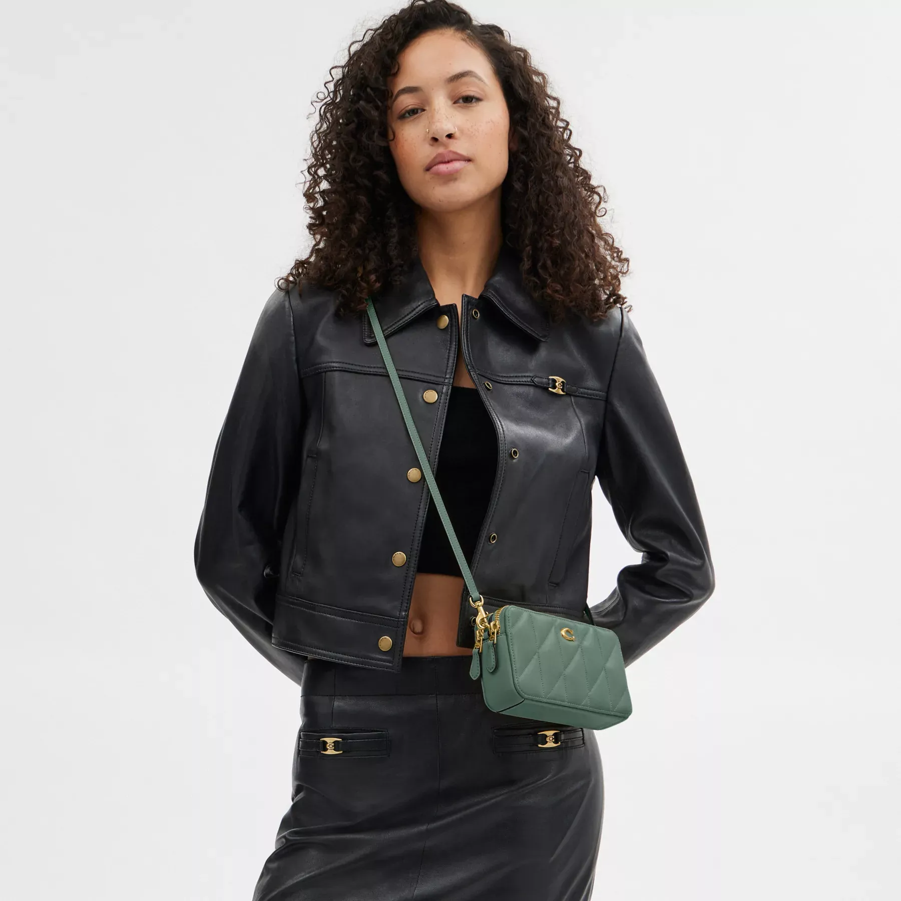 A total multitasker, our perfectly sized Kira can be worn as a crossbody, a wristlet, carried as a clutch or used as a pouch in a larger bag. Crafted of plush, quilted nappa leather, it has two zippered compartments and a convenient center slip pocket to keep you organized with room for a phone, cards, keys and other accessories.