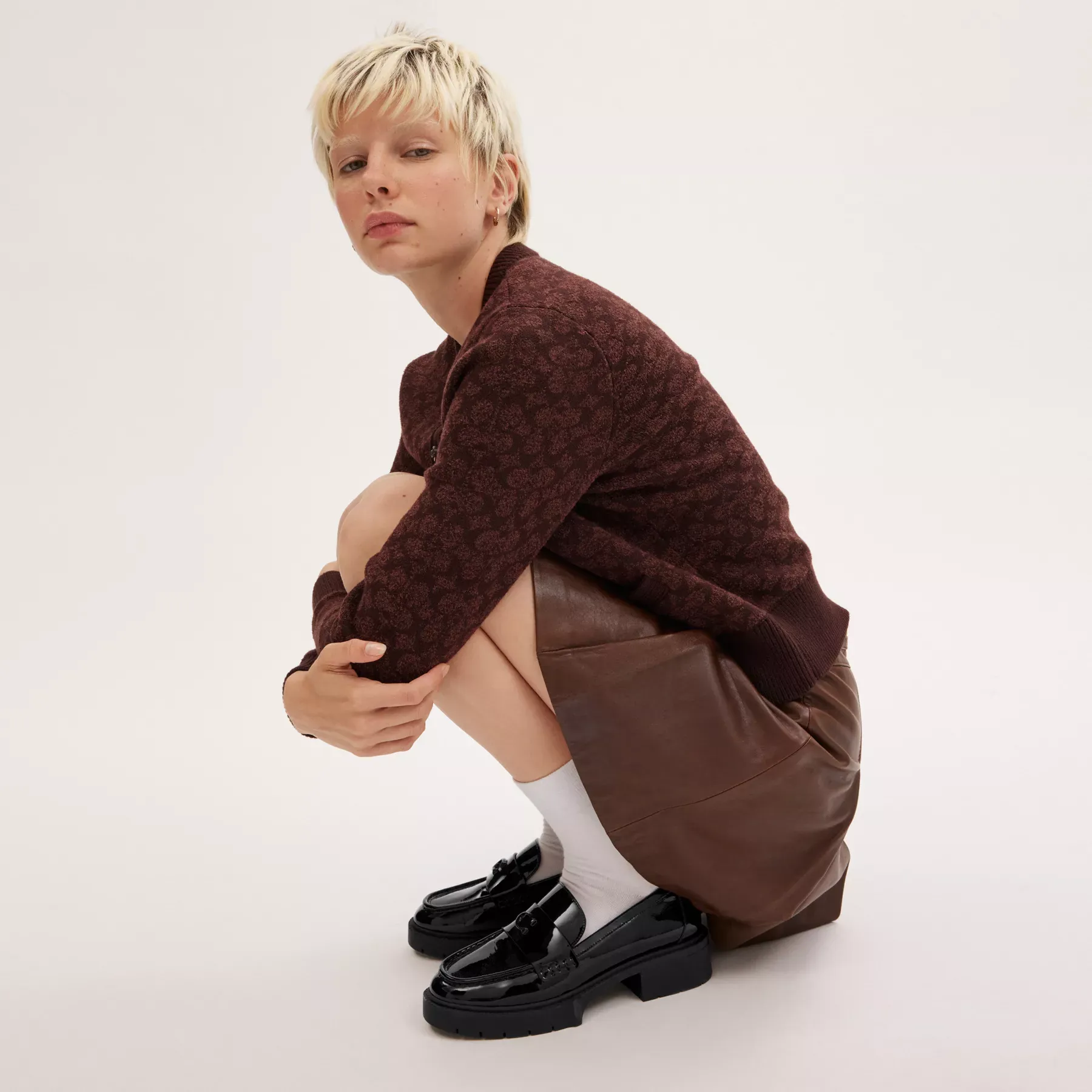,Our Leah loafer takes a timeless style to new heights with a chunky ‘90s-inspired lug sole for subtle lift. Crafted of glossy patent leather, it features cushiony memory foam padding for all-day comfort and is finished with tonal Signature hardware for an iconic Coach look.