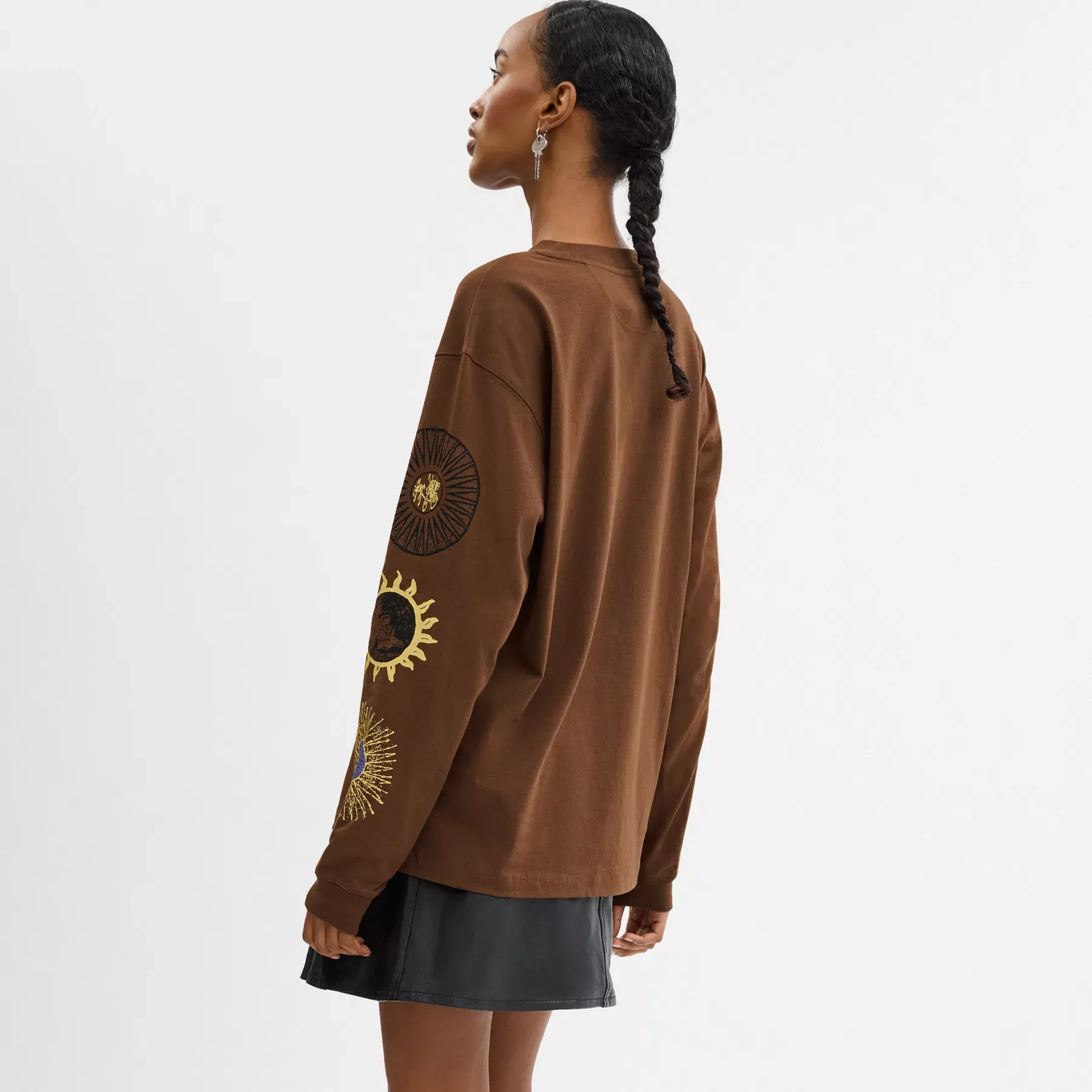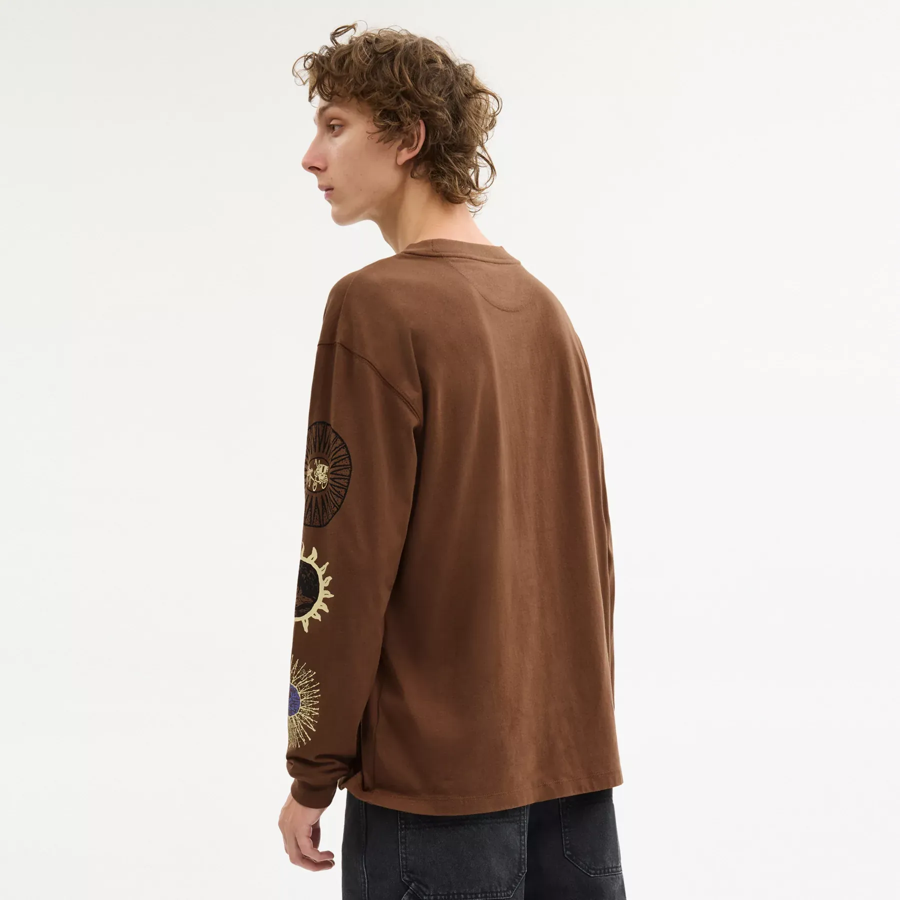 Long Sleeve Graphic T-Shirt In Organic Cotton Brown