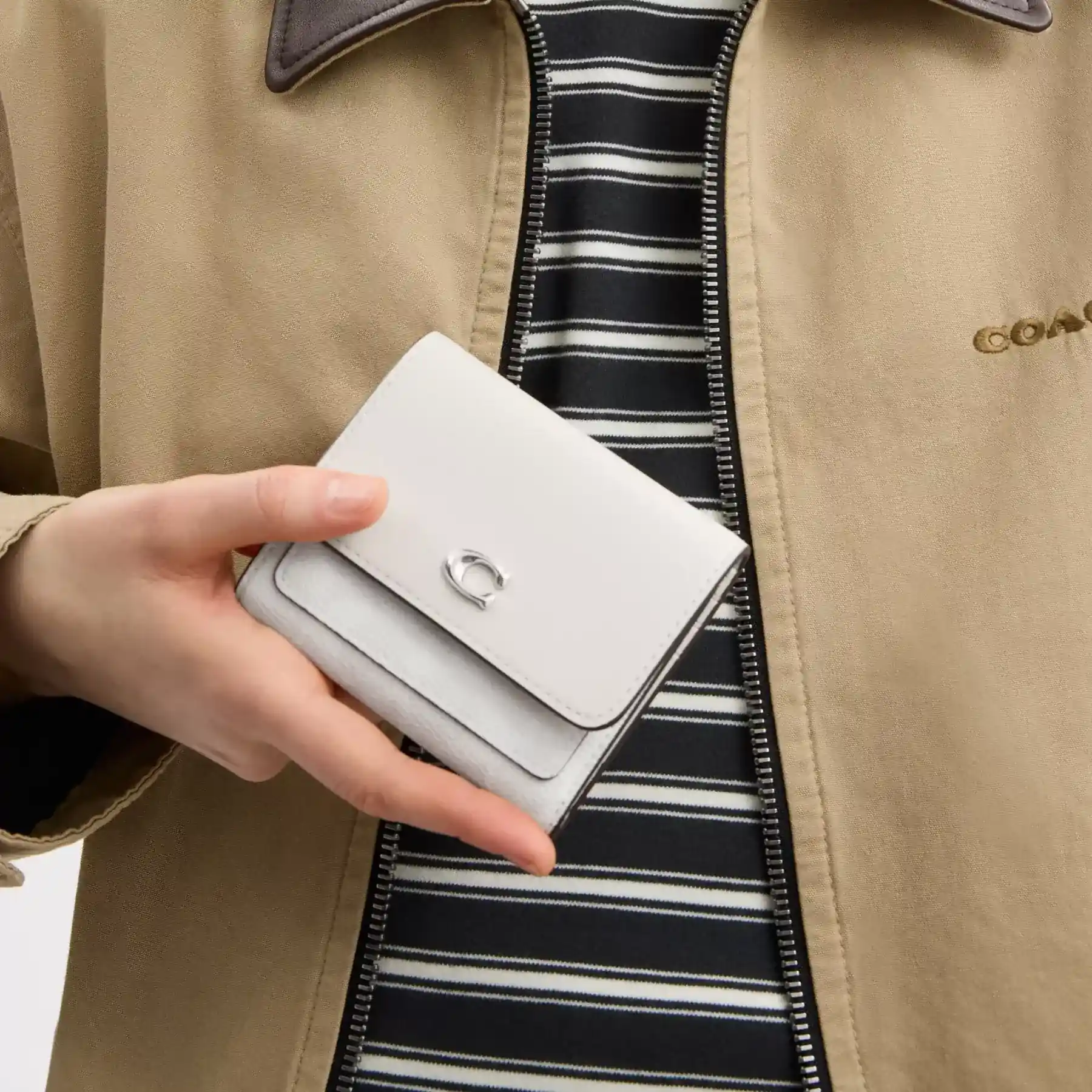 Streamlined and structured, our Mila is a perfectly organized wallet for everyday. Crafted of refined leather and our Signature canvas, the compact tri-fold style features a convenient exterior zip coin pocket, six card slots, a full-length bill compartment and a hero card slot for easy access to an ID and most frequently used cards.