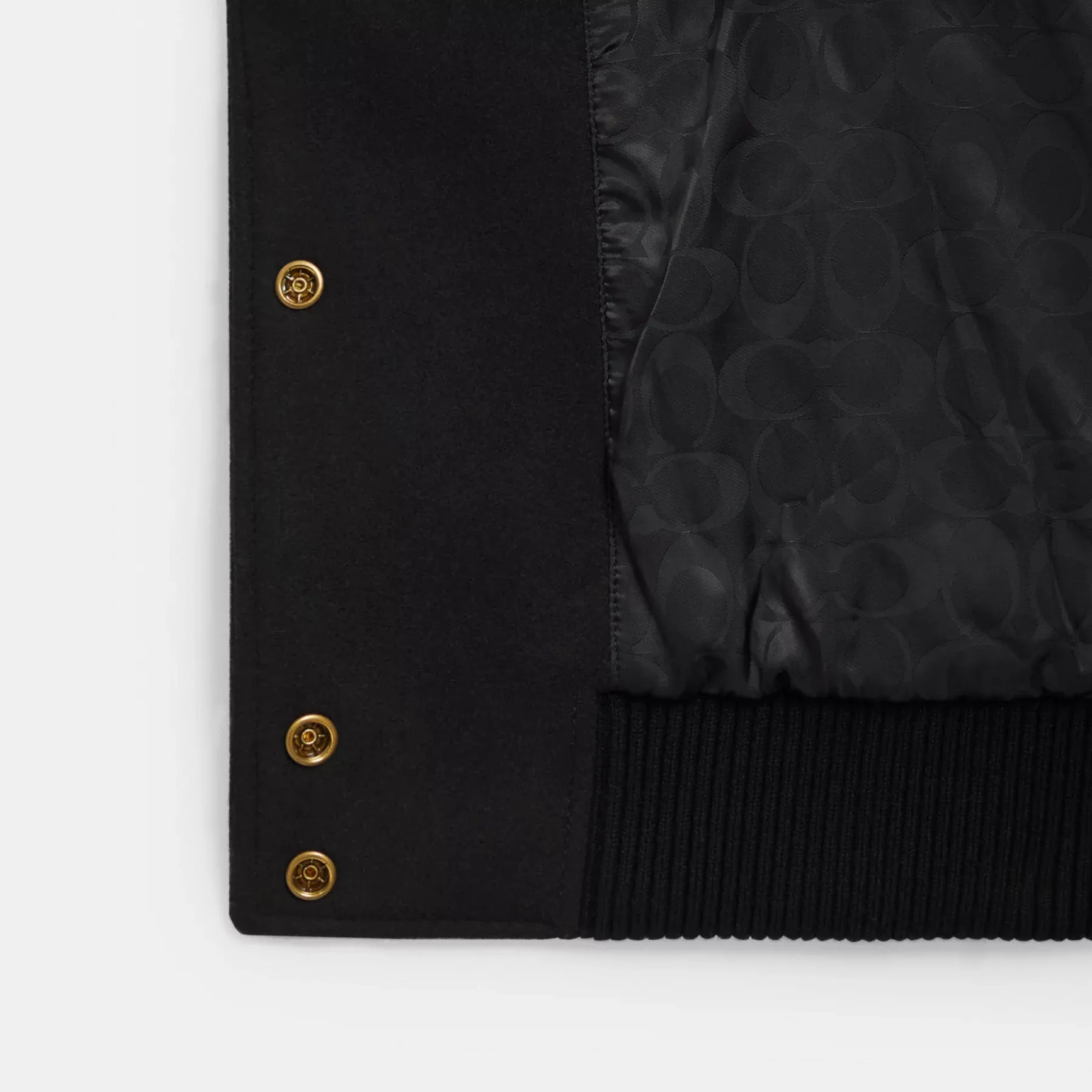 ,Celebrate 2025 Year of the Snake with our special New Year collection. Detailed with pops of metallic gold leather accents, the oversized snap-front Varsity jacket is crafted of a soft wool-blend and smooth leather. Featuring Coach patches and embroidery, the fully lined jacket is finished with slip pockets, ribbed trim and a playful serpent charm on the left pocket.