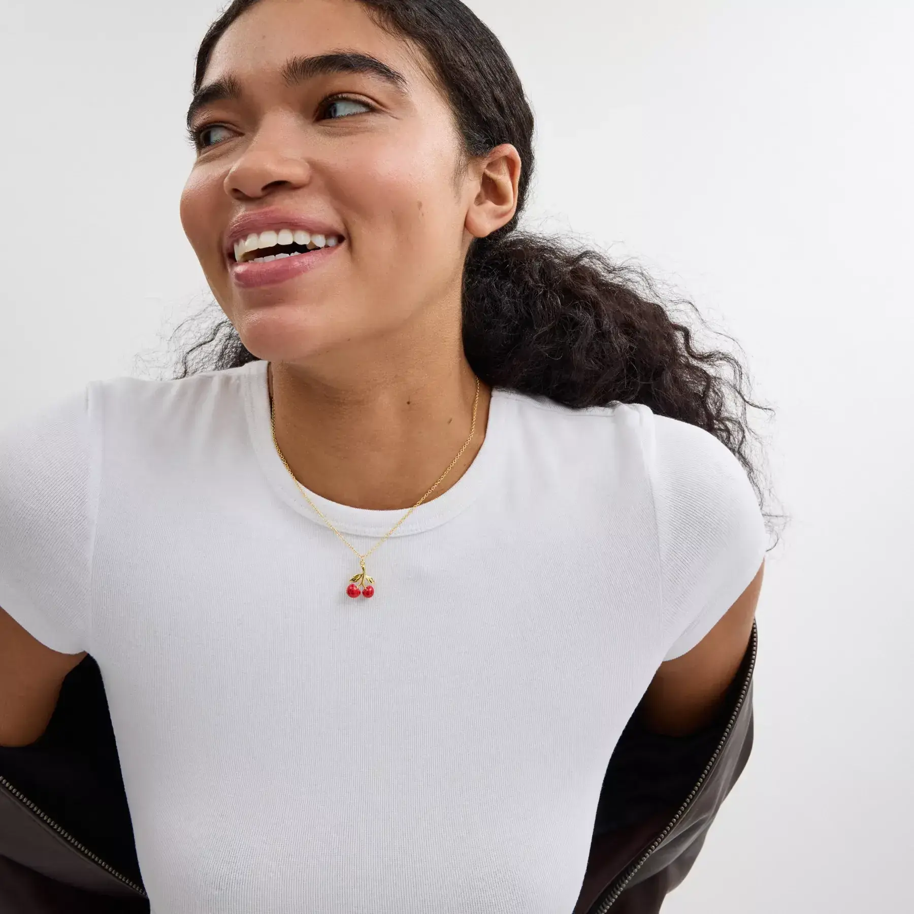 The cherry on top. Featuring a playful bright resin cherry pendant, this delicate chain necklace is finished with an adjustable clasp closure to wear long or short.