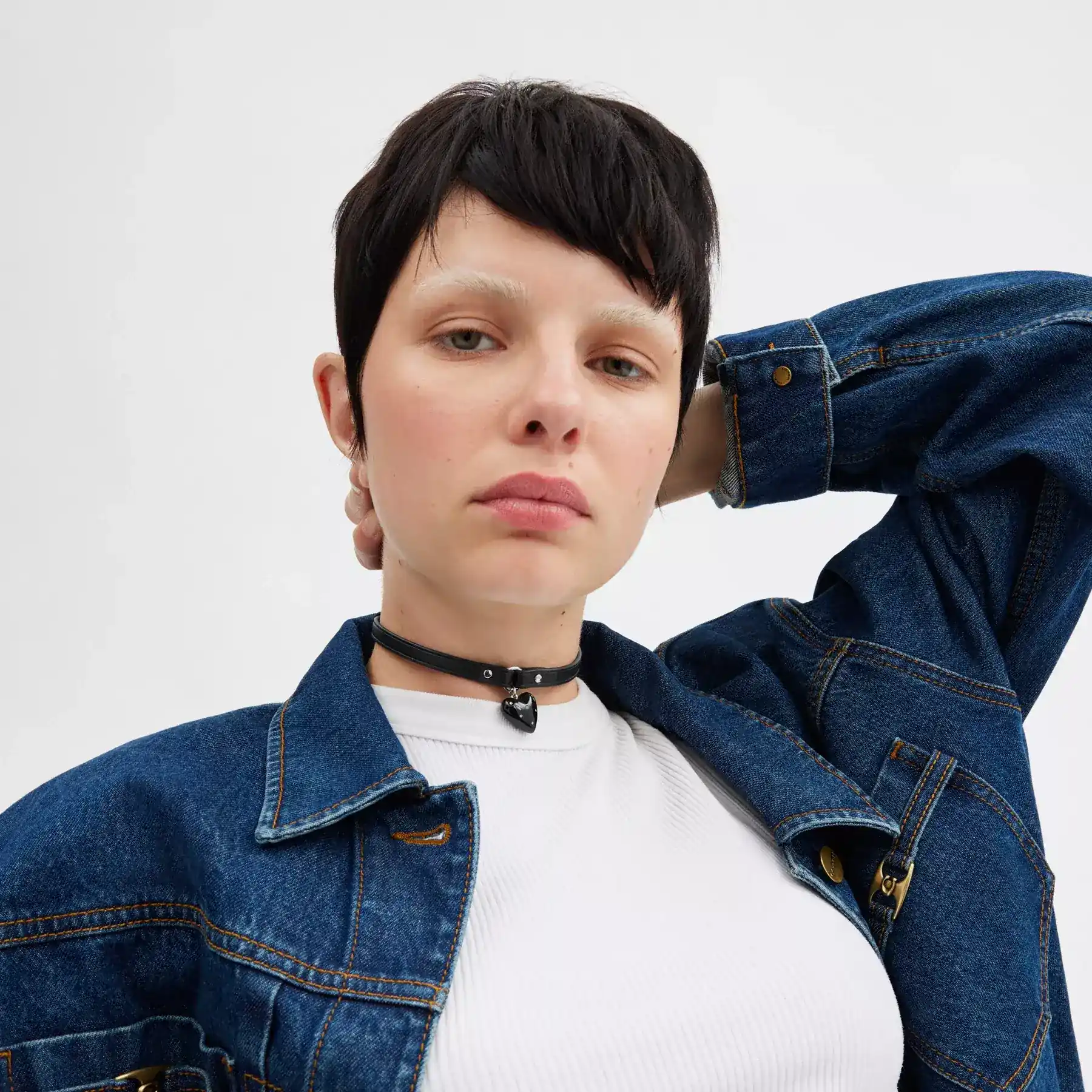 Crafted of smooth leather in a nod to our heritage, this choker necklace features a resin heart pendant accented with shimmering pavé crystals. It’s finished with an adjustable buckle closure.