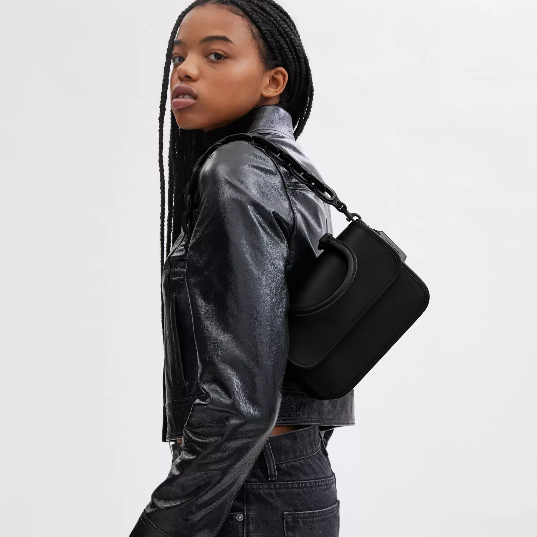 Inspired by free spirits, rebels and dreamers, the aptly named Rogue is a go-anywhere bag. This petite addition to the Rogue family can be carried by the top handle, worn as a short shoulder bag with the elegant leather covered chain strap or crossbody with the long detachable strap. Perfectly organized with four compartments and a convenient outside slip pocket for easy access to essentials, the versatile glovetanned leather style is finished with durable tonal matte PVD coated hardware and secures with a pushlock closure.