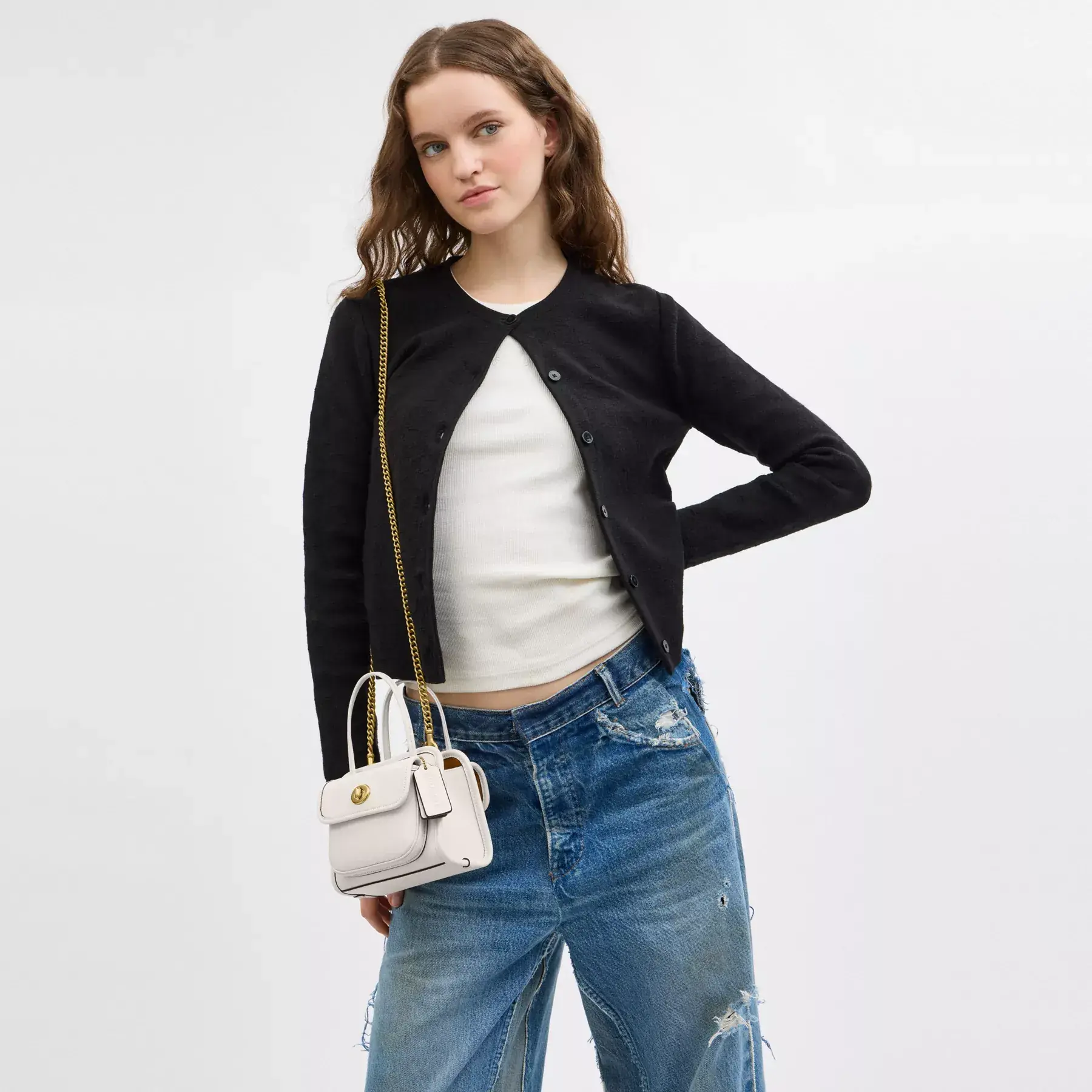 • Detachable chain strap with 56cm drop for shoulder or crossbody wear