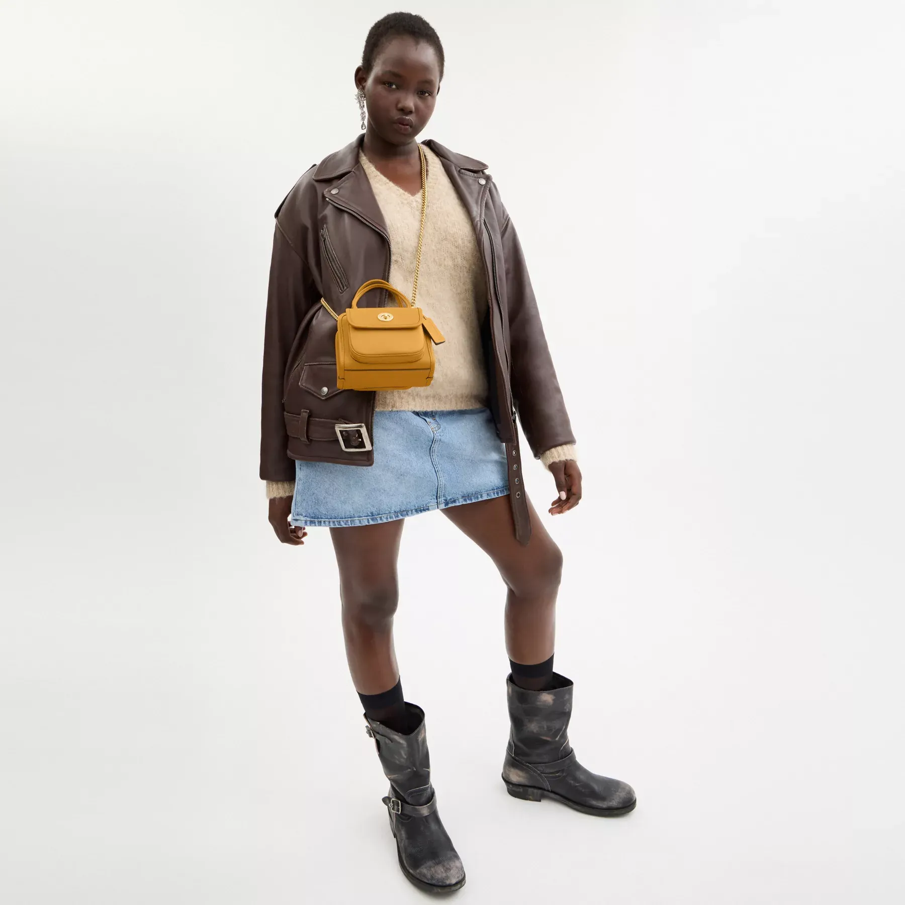- Detachable chain strap with 56cm drop for shoulder or crossbody wear