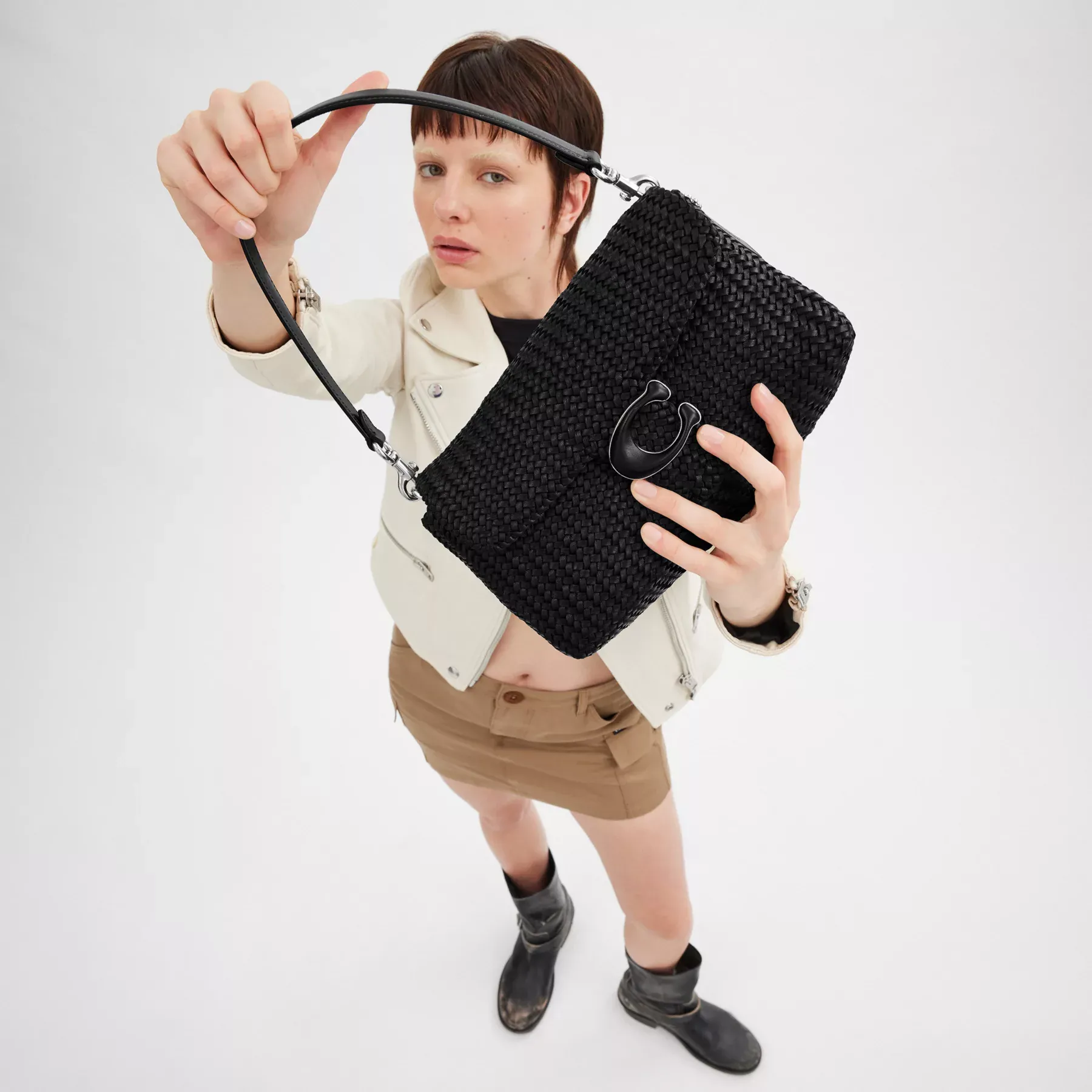 The Soft Tabby reimagines our structured take on an archival 1970s Coach design with a slouchy relaxed feel. Finished with our leather-covered Signature hardware for an iconic touch, this woven shoulder bag features zip pockets inside and out to organize small accessories and two detachable straps to carry by hand, style as a short shoulder bag or wear crossbody. A nod to our heritage Coach craftsmanship, the bag’s supple leather laces are weaved by hand on a wooden mold in a process that takes up to 26 hours to complete.