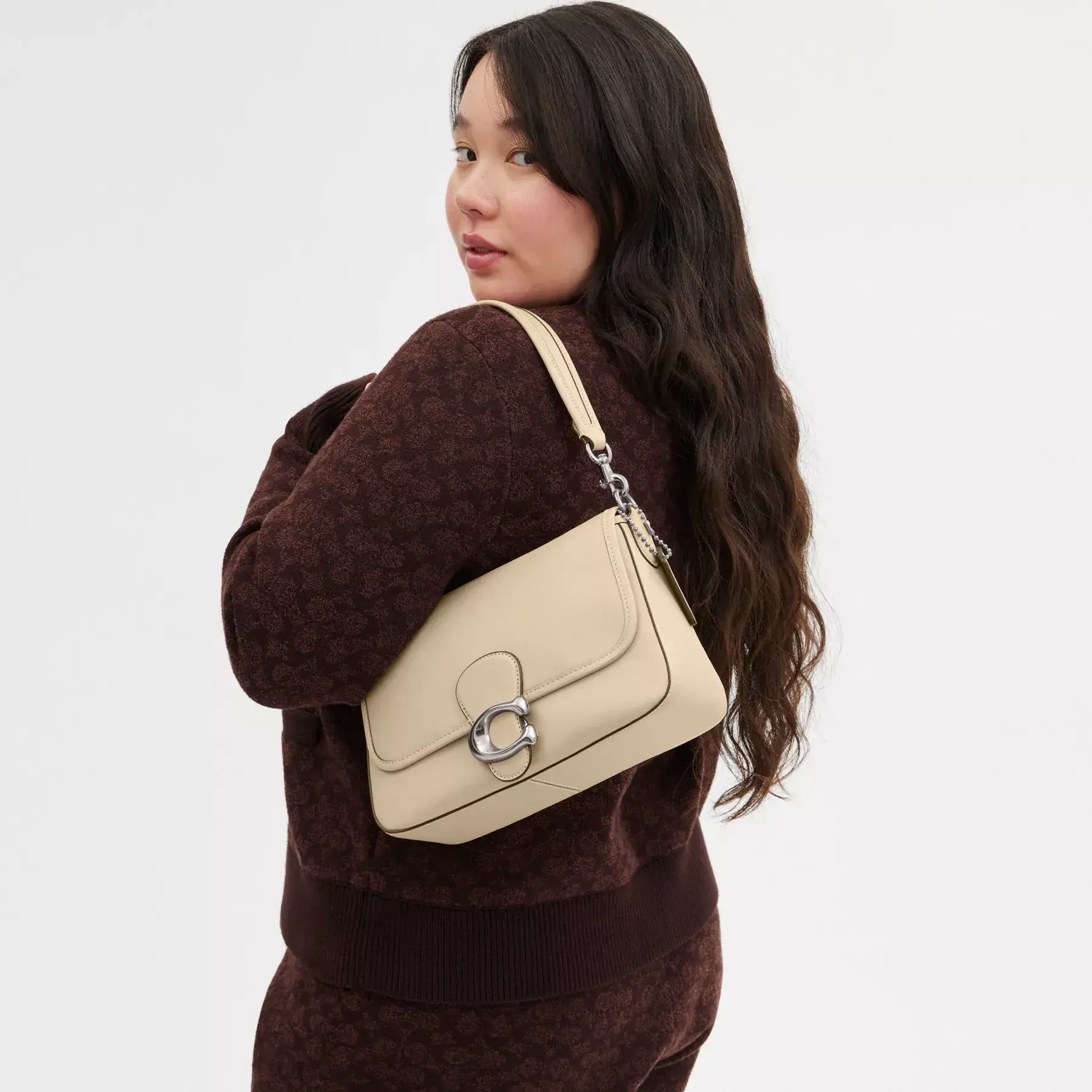 The Soft Tabby reimagines our structured take on an archival 1970s Coach design with a slouchy relaxed feel. Finished with our Signature hardware for an iconic touch, this smooth leather shoulder bag features zip pockets inside and out to organize small accessories and two detachable straps to carry by hand, style as a short shoulder bag or wear crossbody.