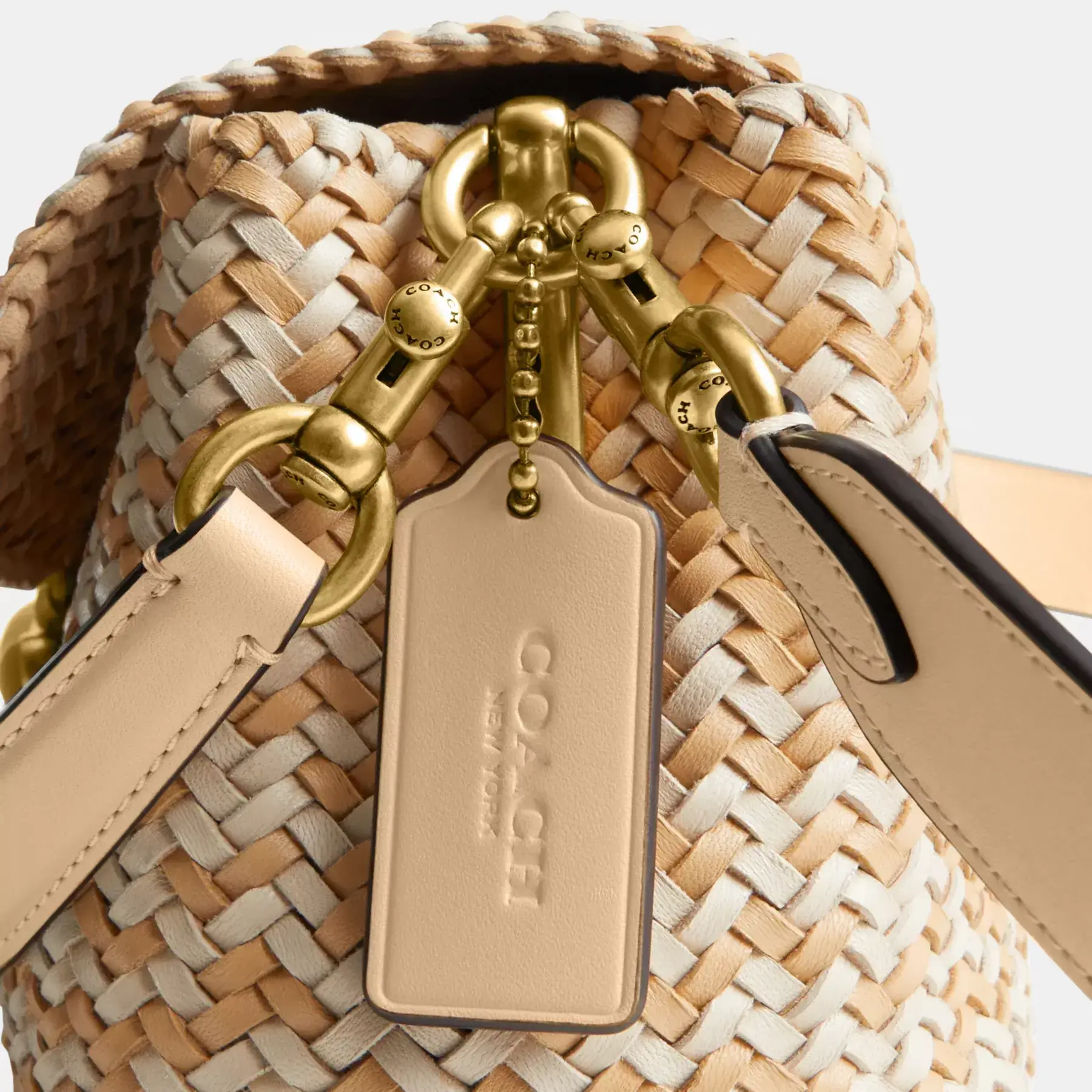 The Soft Tabby reimagines our structured take on an archival 1970s Coach design with a slouchy relaxed feel. Finished with our leather-covered Signature hardware for an iconic touch, this woven shoulder bag features zip pockets inside and out to organize small accessories and two detachable straps to carry by hand, style as a short shoulder bag or wear crossbody. A nod to our heritage Coach craftsmanship, the bag’s supple leather laces are weaved by hand on a wooden mold in a process that takes up to 26 hours to complete.