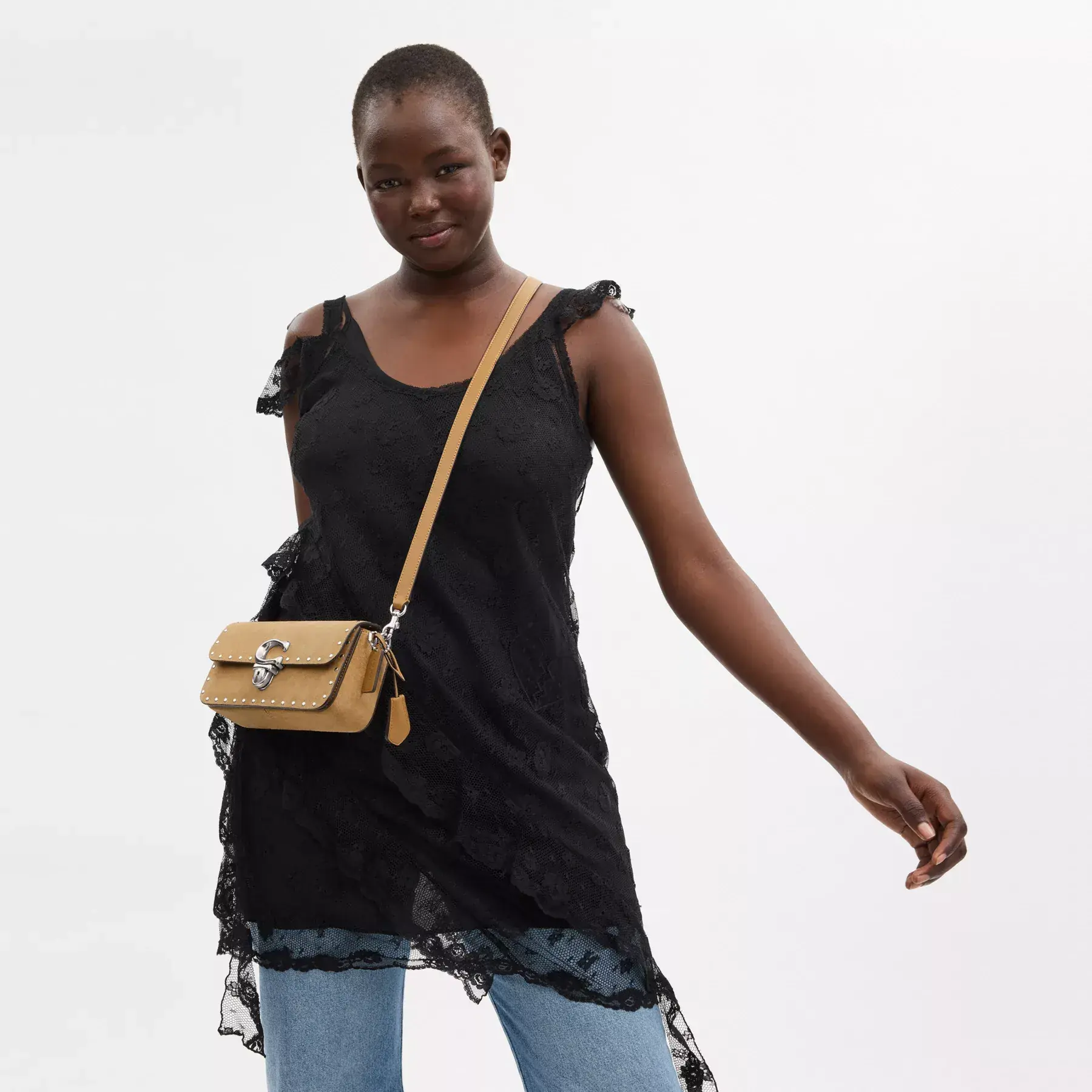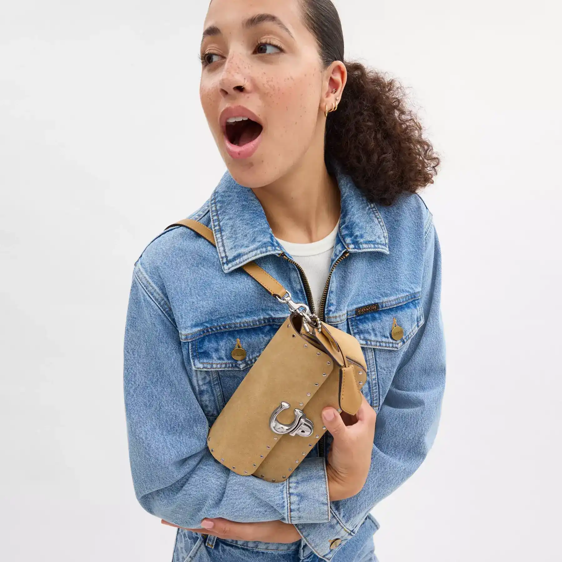 A timeless style that you’ll love (and wear) for years to come, this aptly named bag was dreamed up in the Coach Design Studio. Finished with striking polished rivets and an archive-inspired Signature push-lock closure, this baguette bag is crafted of velvety suede and glovetanned leather with plenty of pockets to keep you organized on the go. Detachable straps let you carry by hand, style as a short shoulder bag or wear crossbody. (Feels good to feel put-together, doesn’t it?)