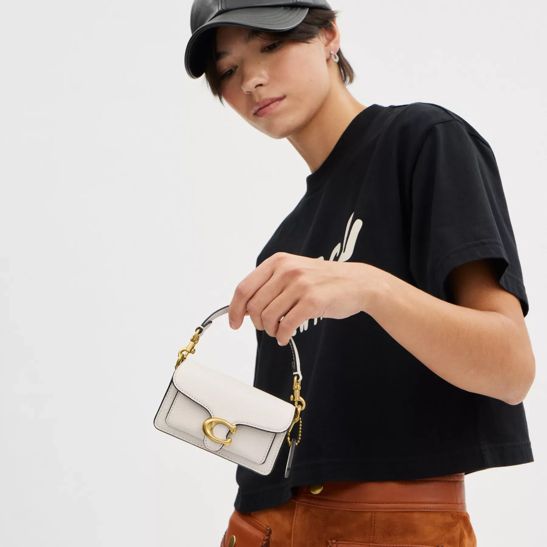 Mini me. We made a scaled down version of our customer-favorite Tabby bag with all of the same details as the original. Finished with our Signature hardware for an iconic touch, it’s crafted of our textured polished pebble leather. The versatile design features two detachable straps to carry by hand or wear crossbody and a dual gusset interior to organize cash, cards, ear buds, and keys. (Great things come in small packages.)