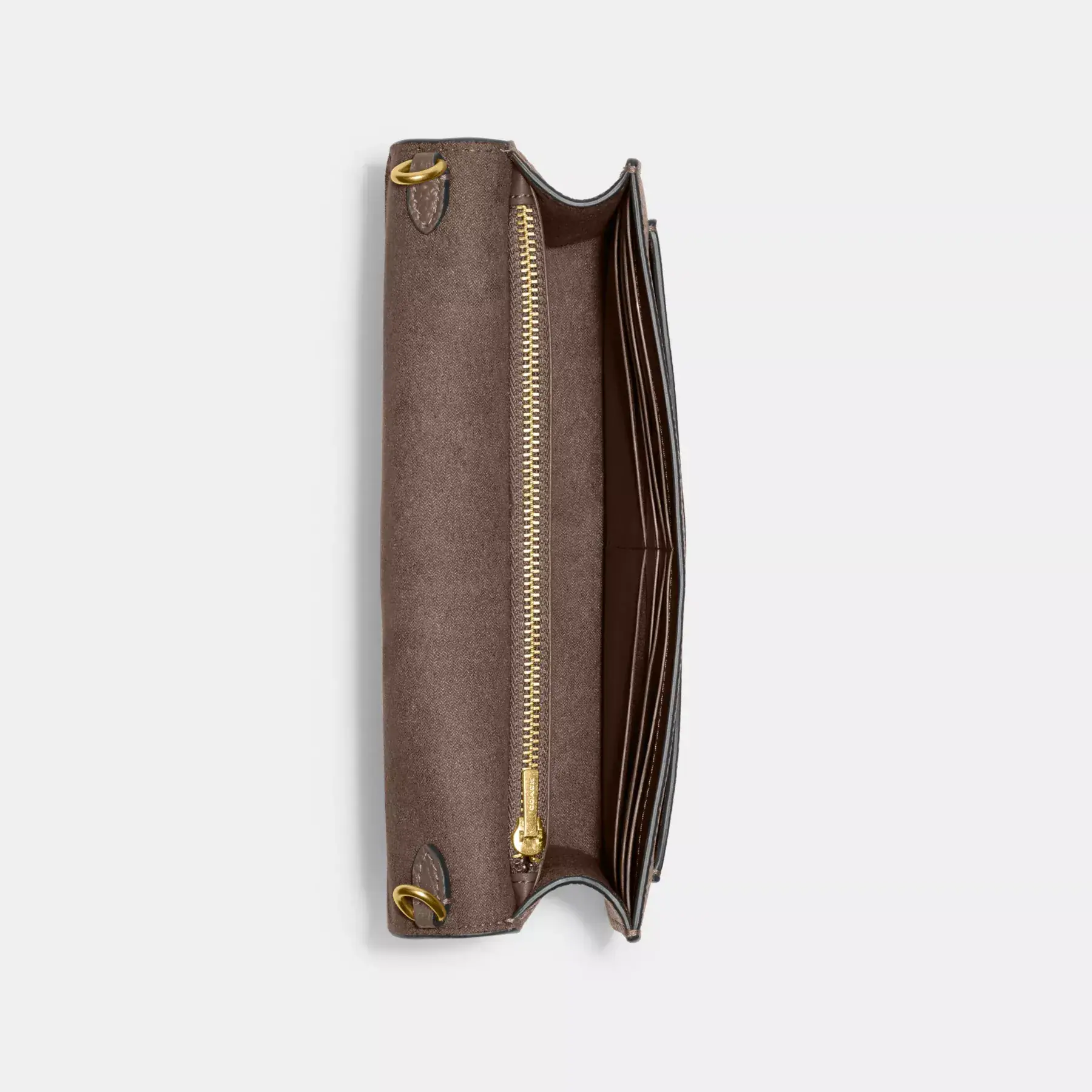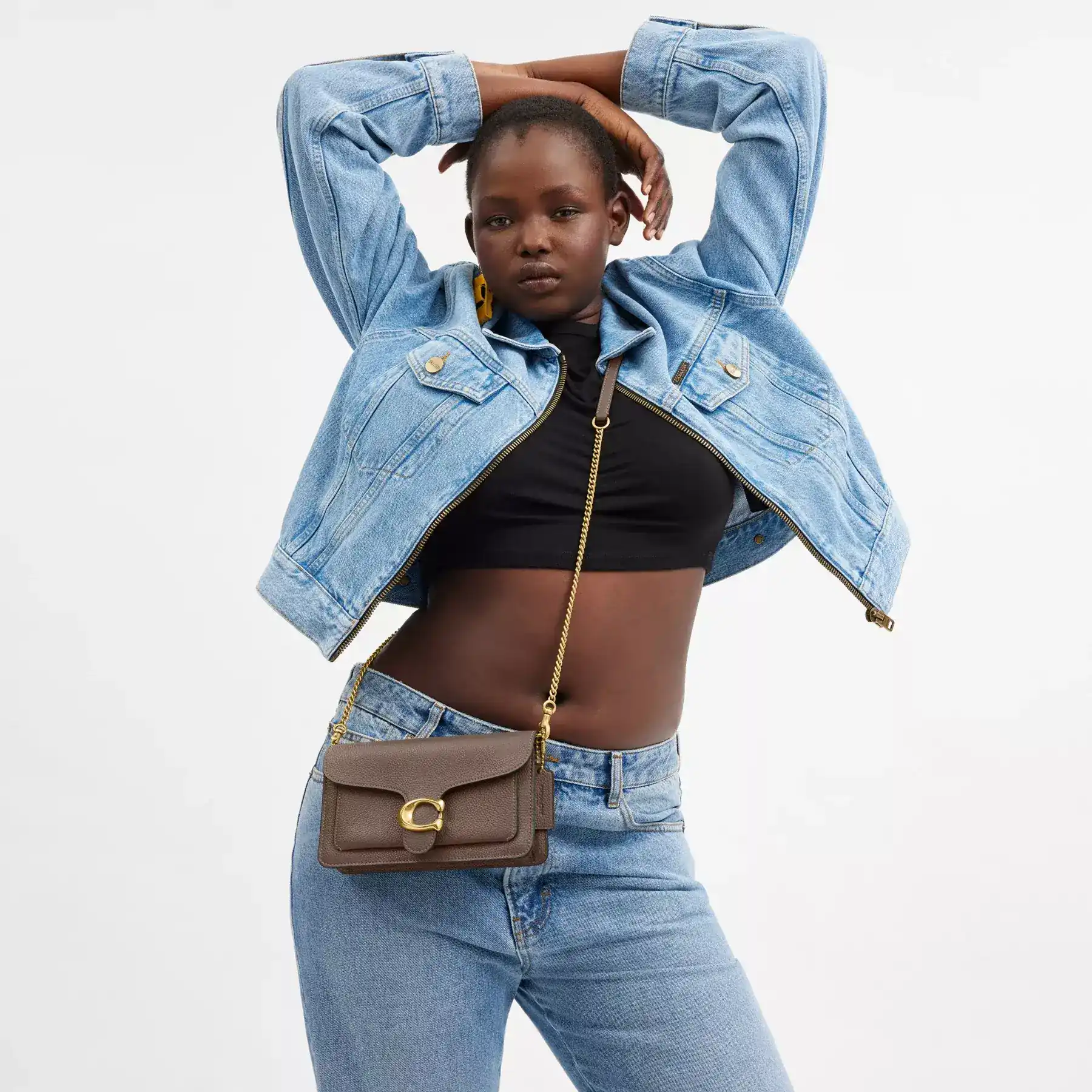 A modern take on an archival 1970s Coach design, our structured Tabby clutch is crafted of polished pebble leather. Finished with our Signature hardware, this organized, three compartment design has a secure interior zippered compartment and an exterior slip pocket for easy access to essentials. The versatile bag can be carried as a clutch or worn crossbody with the elegant chain strap, making it the perfect choice for both dressed up and casual looks.