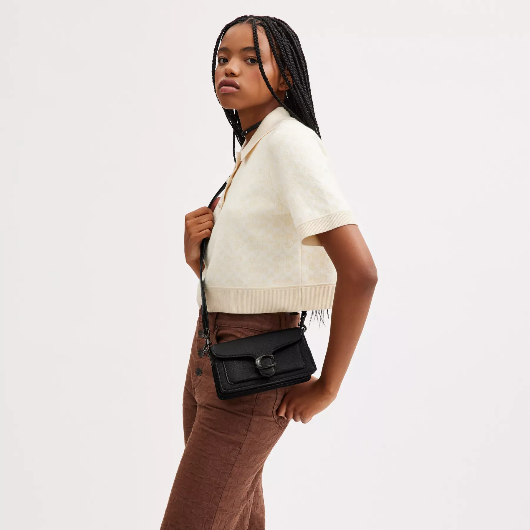 A modern take on an archival 1970s Coach design, our structured Tabby shoulder bag is crafted of polished pebble leather. Smaller than the 26, the petite 20 features two detachable straps to carry by hand, style as a short shoulder bag or wear crossbody. It’s finished with our Signature hardware for an iconic touch.