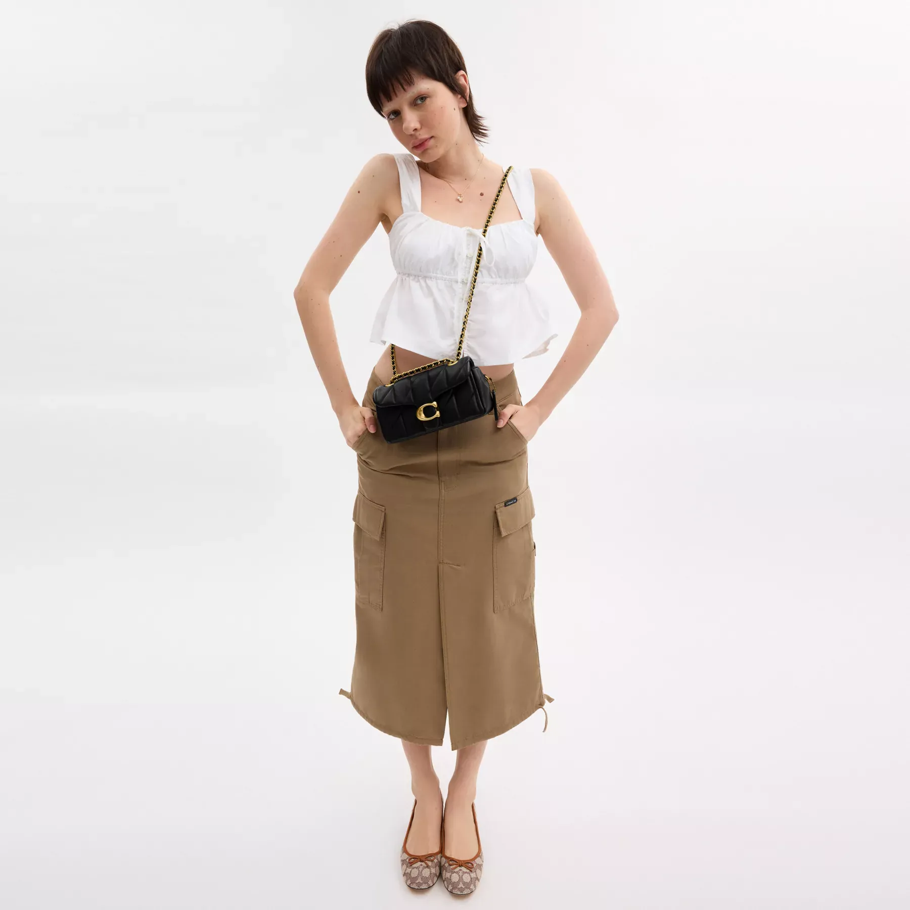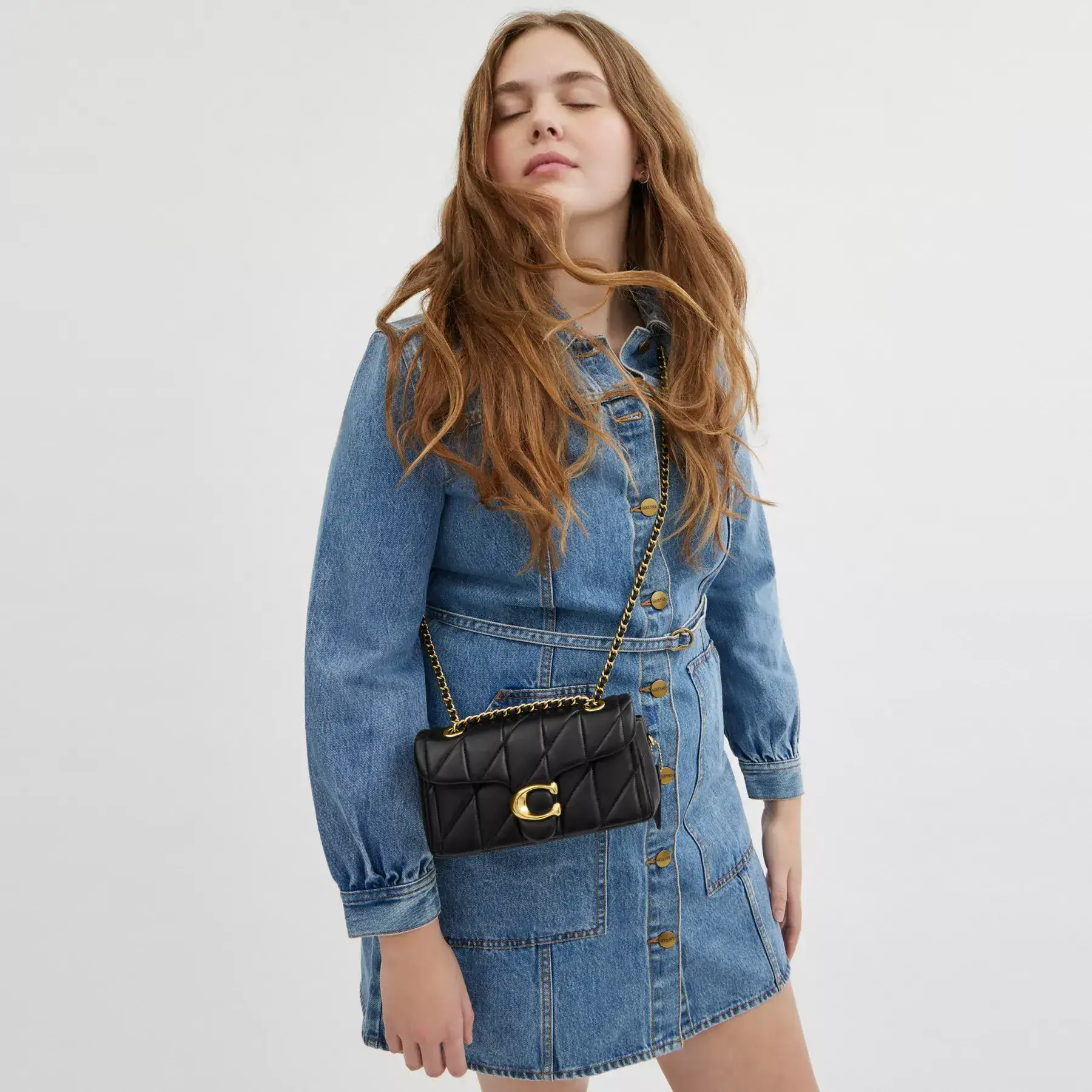 A modern take on an archival 1970s Coach design, our structured Tabby shoulder bag is crafted of quilted plush, ultra-soft nappa leather. Slightly smaller than the 26, the petite 20 features a long leather chain strap to wear crossbody or double up for a shorter, dressier look. It’s finished with our Signature hardware for an iconic touch.
