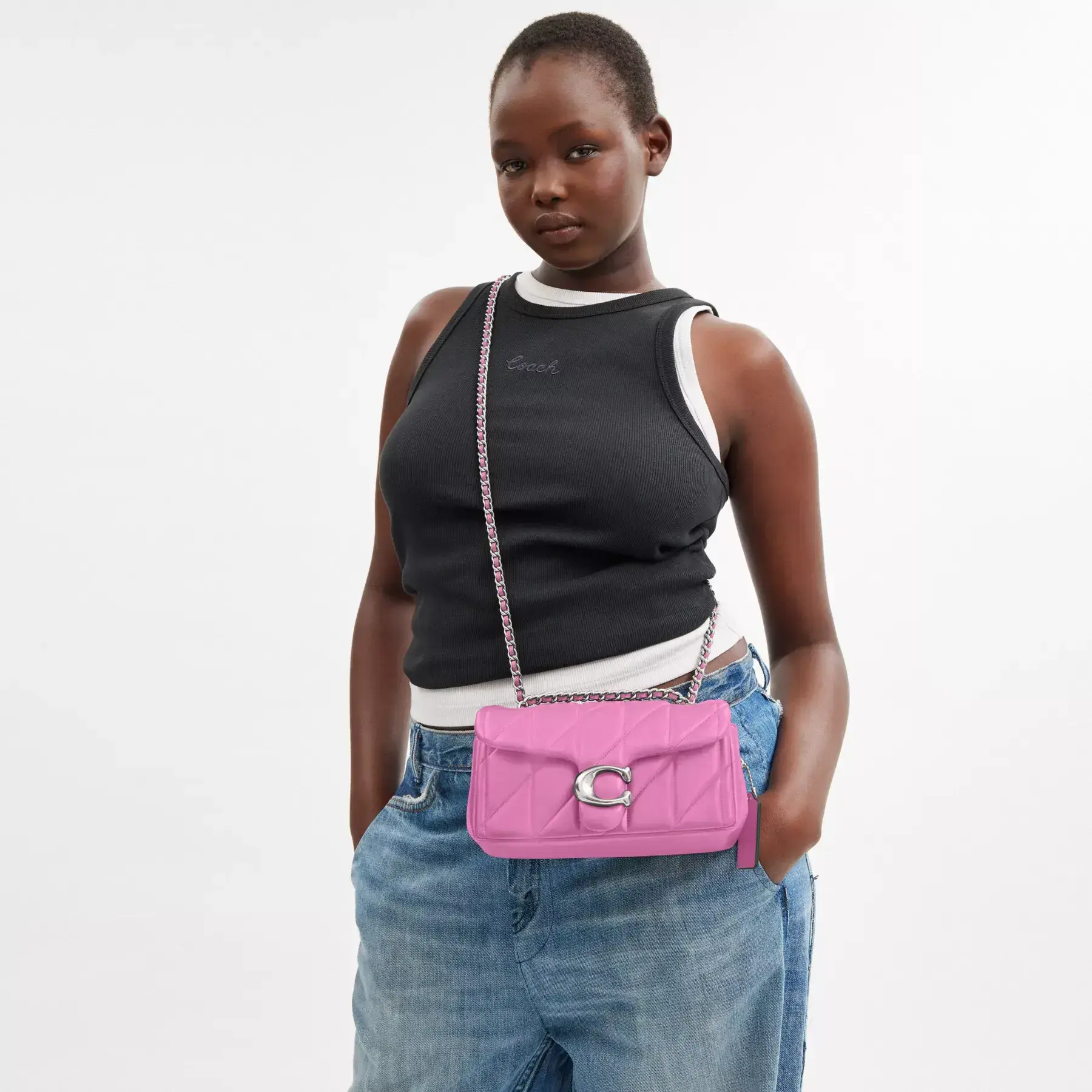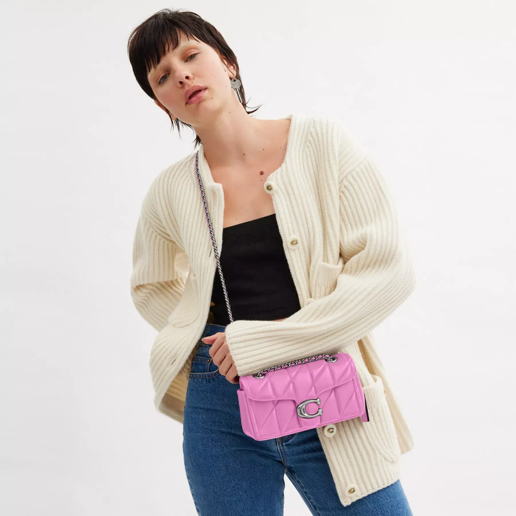 A modern take on an archival 1970s Coach design, our structured Tabby shoulder bag is crafted of quilted plush, ultra-soft nappa leather. Slightly smaller than the 26, the petite 20 features a long leather chain strap to wear crossbody or double up for a shorter, dressier look. It’s finished with our Signature hardware for an iconic touch.