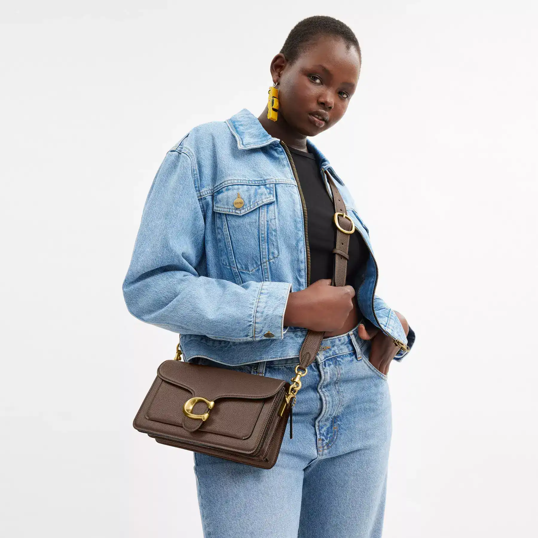 A modern take on an archival 1970s Coach design, our structured Tabby shoulder bag is crafted of polished pebble leather. Finished with our Signature hardware for an iconic touch, the compact 26 features two detachable straps to carry by hand, style as a short shoulder bag or wear crossbody.